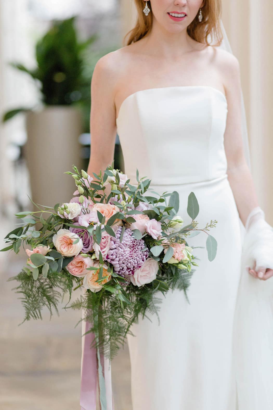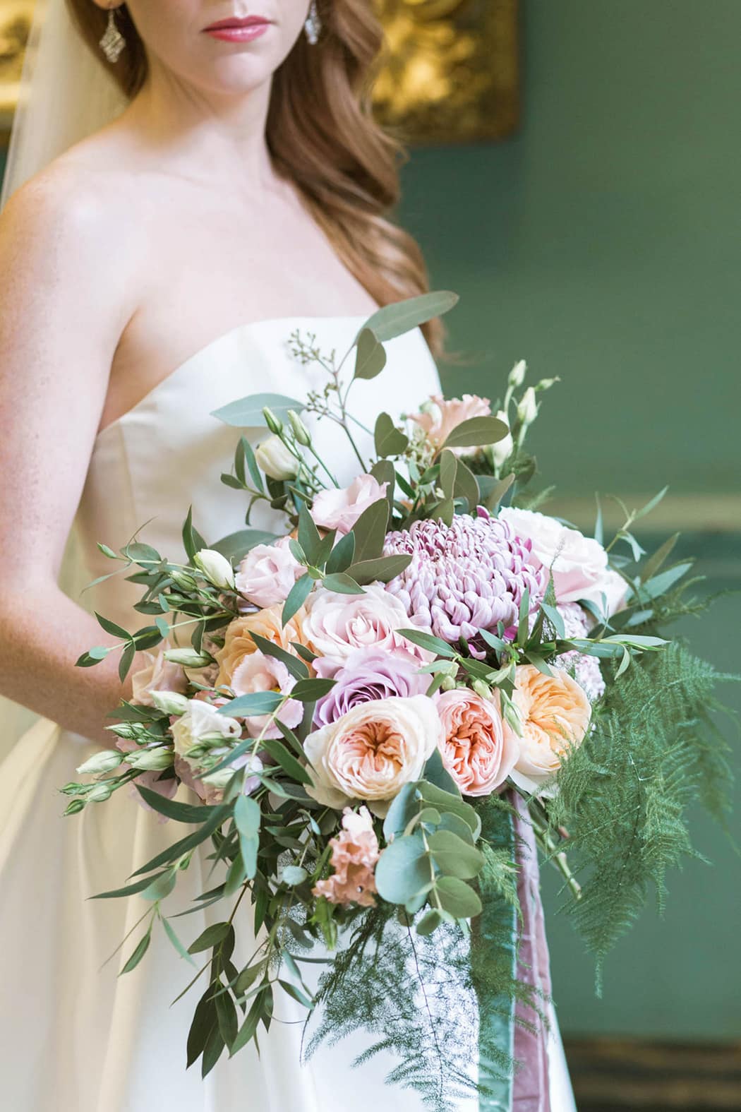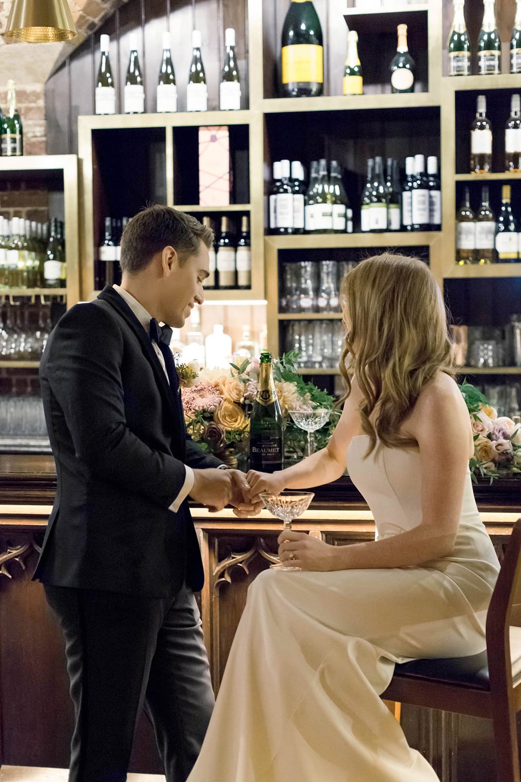 The venue has a variety of spaces that are available to use during your wedding and we wanted to showcase all of the amazing spaces. The largest room, the Nash, is grand and classic and a fantastic setting for a wedding reception. The staircase at 116 Pall Mall is a photo opportunity dream. From the amazing chandelier to the double sided staircase that makes QUITE the entryway for any couple. We used the wine bar to create a location that a couple could have a quiet moment alone after the ceremony or would be a fantastic space to host a post party as it is quite the hidden gem in the venue and adds an element of surprise to guests when they enter the original wine bar of the historic location.