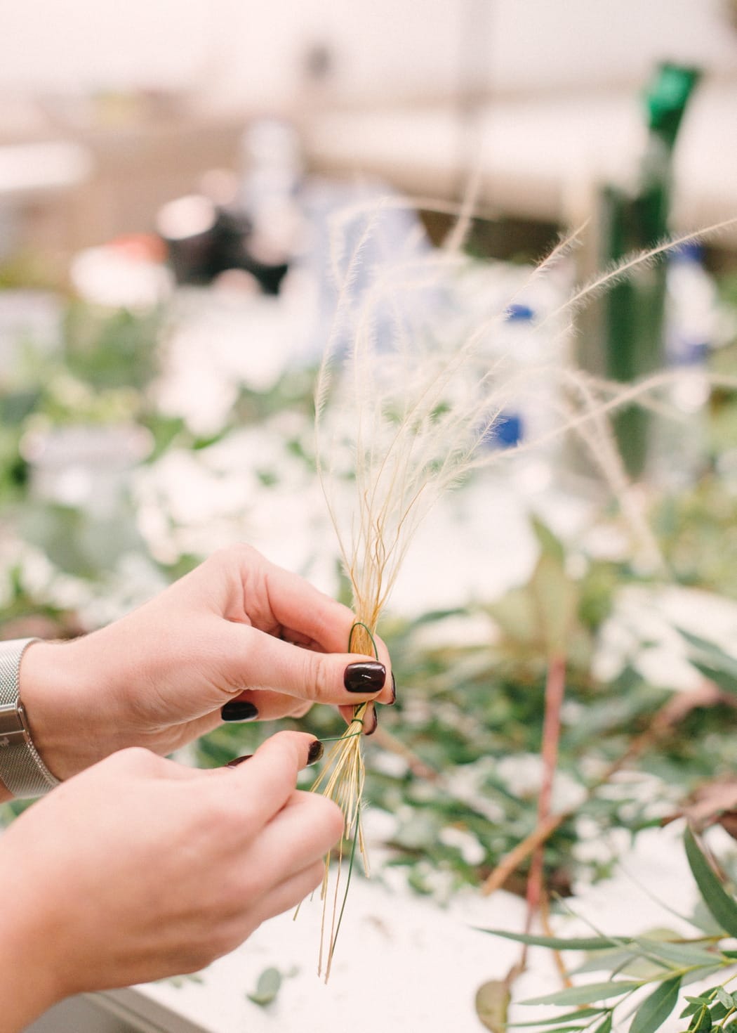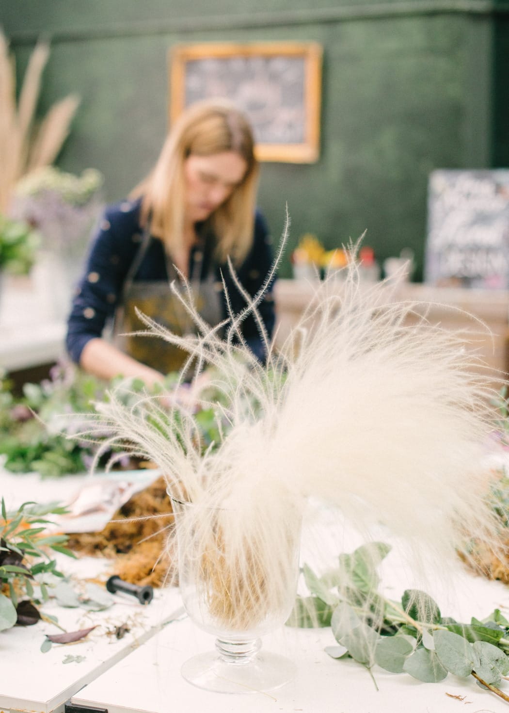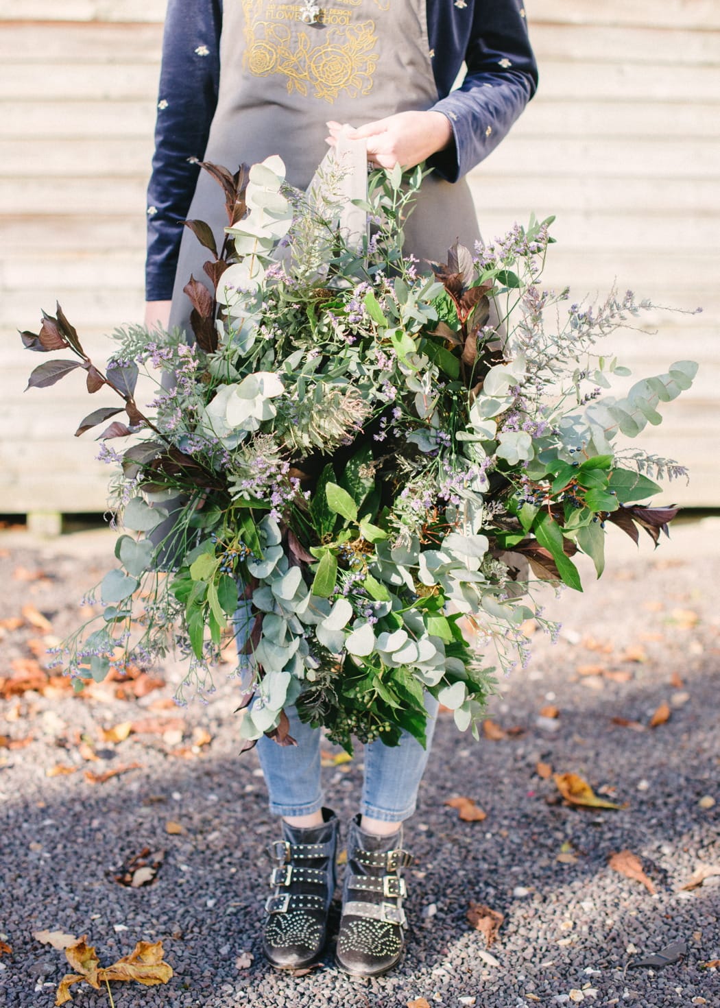 You can make a wreath at any time of year using seasonal foliage and flowers of your choice – your local florist will be able to guide you on what will work but we used a selection of eucalyptus, pampas grass, berries and wigeila.