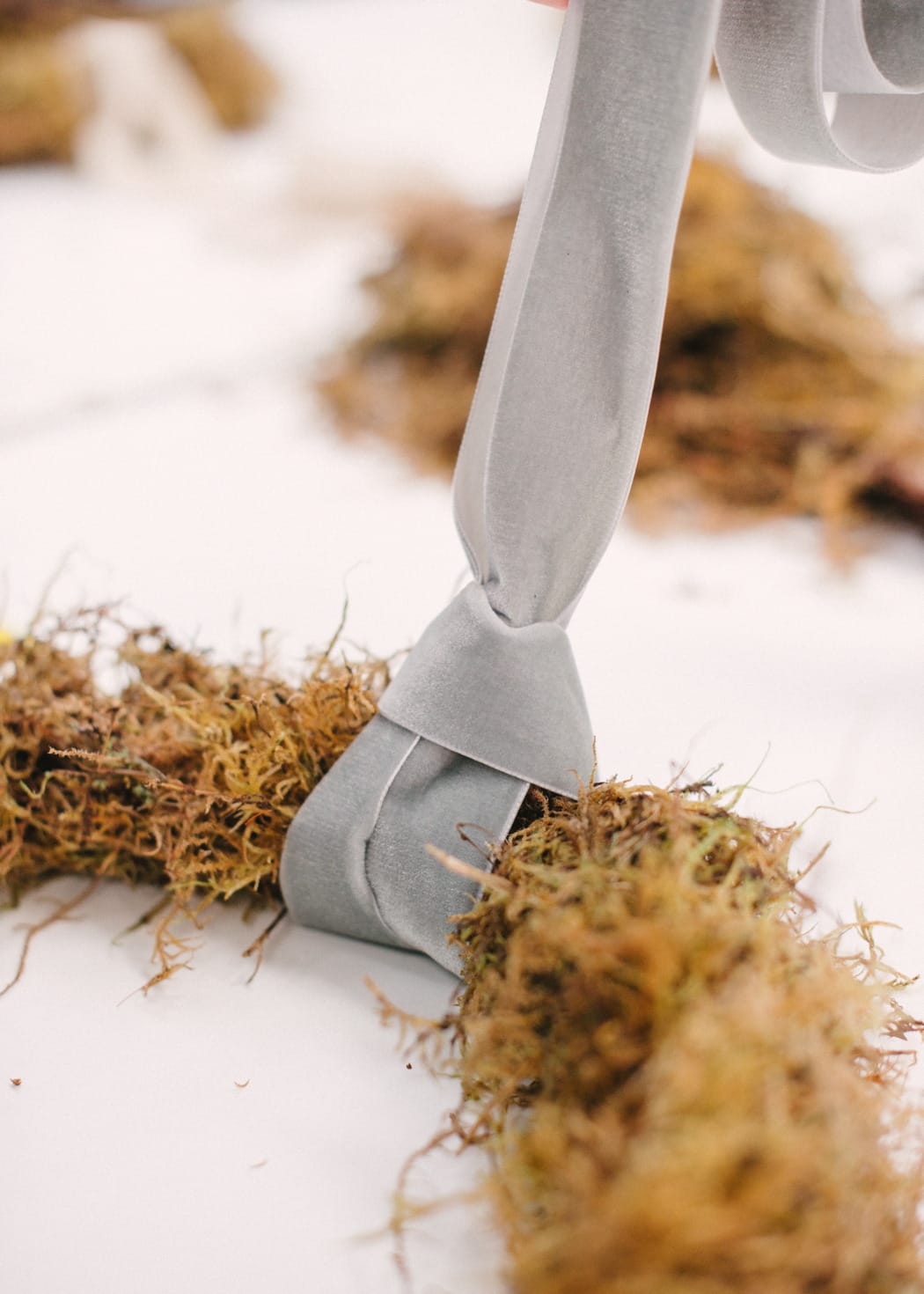 You will need about two metres of ribbon to hang your wreath. We chose some rather lush velvet ribbon!