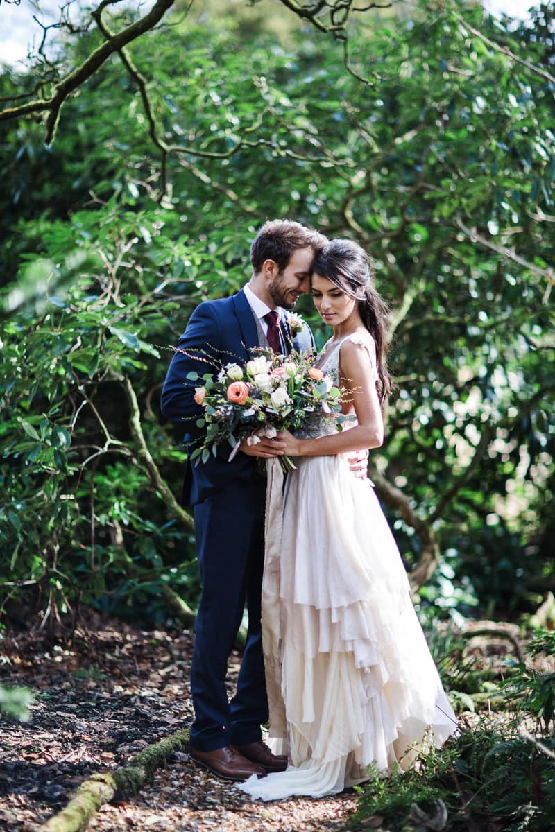 We were extremely lucky to work with such a stunning duo from Industry Models – Tom & Lydia – who were actually a couple in real life, which added such a realness to the shoot with those little romantic moments between the two. We wanted them to look stylish with a quirky twist to tie in with the tipis and the natural surroundings. Their hair was styled by Vicky Millington in a number of styles to reflect the dress changes, while Lydia’s makeup was the creation of Maxine Smith who enhanced her stunning features in a subtle yet striking way.
