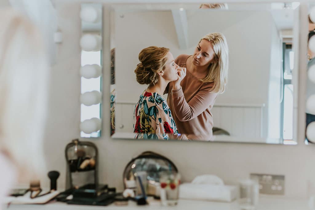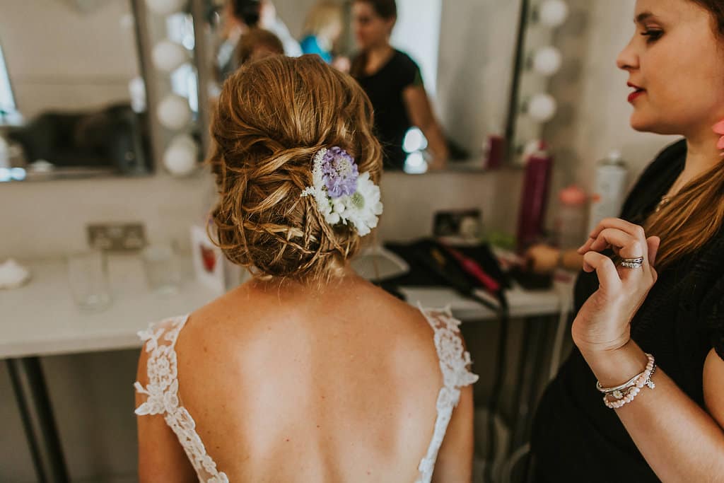 The brief for my hairstylist was: ‘Dartmoor hedgerow-inspired, informal up-do’. Louisa realised my wishes perfectly and I was thrilled. Being a redhead, make-up colours can be tricky but Jess understood me perfectly when I said that I wanted to look like me, but the most special version of me. She combined taupe eye-shadow with a blush rose lip colour to create a natural but glamorous look.