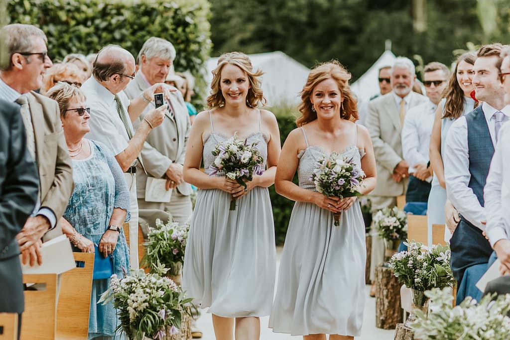 The bridesmaids wore soft grey dresses with a floral lace bodice and skater skirt.