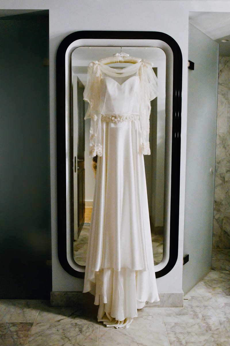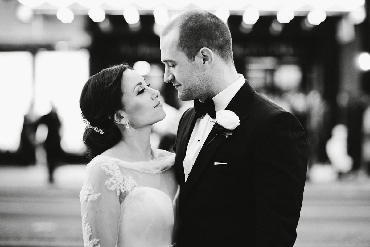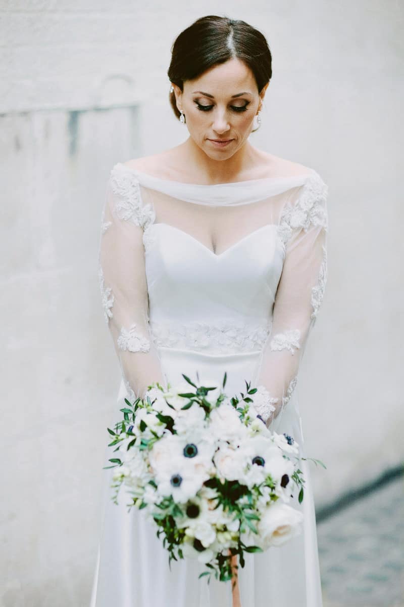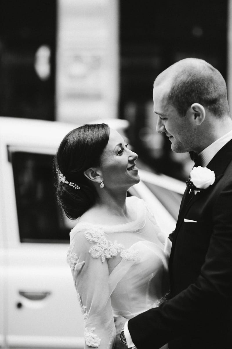 My dress was from Suzanne Neville. I had a custom lace top created for the day, which I removed in the evening and added a customised diamante black belt instead. Glamorous, luxurious and cut to fit, I instantly knew that my dress was the perfect choice for our black-tie city wedding.
