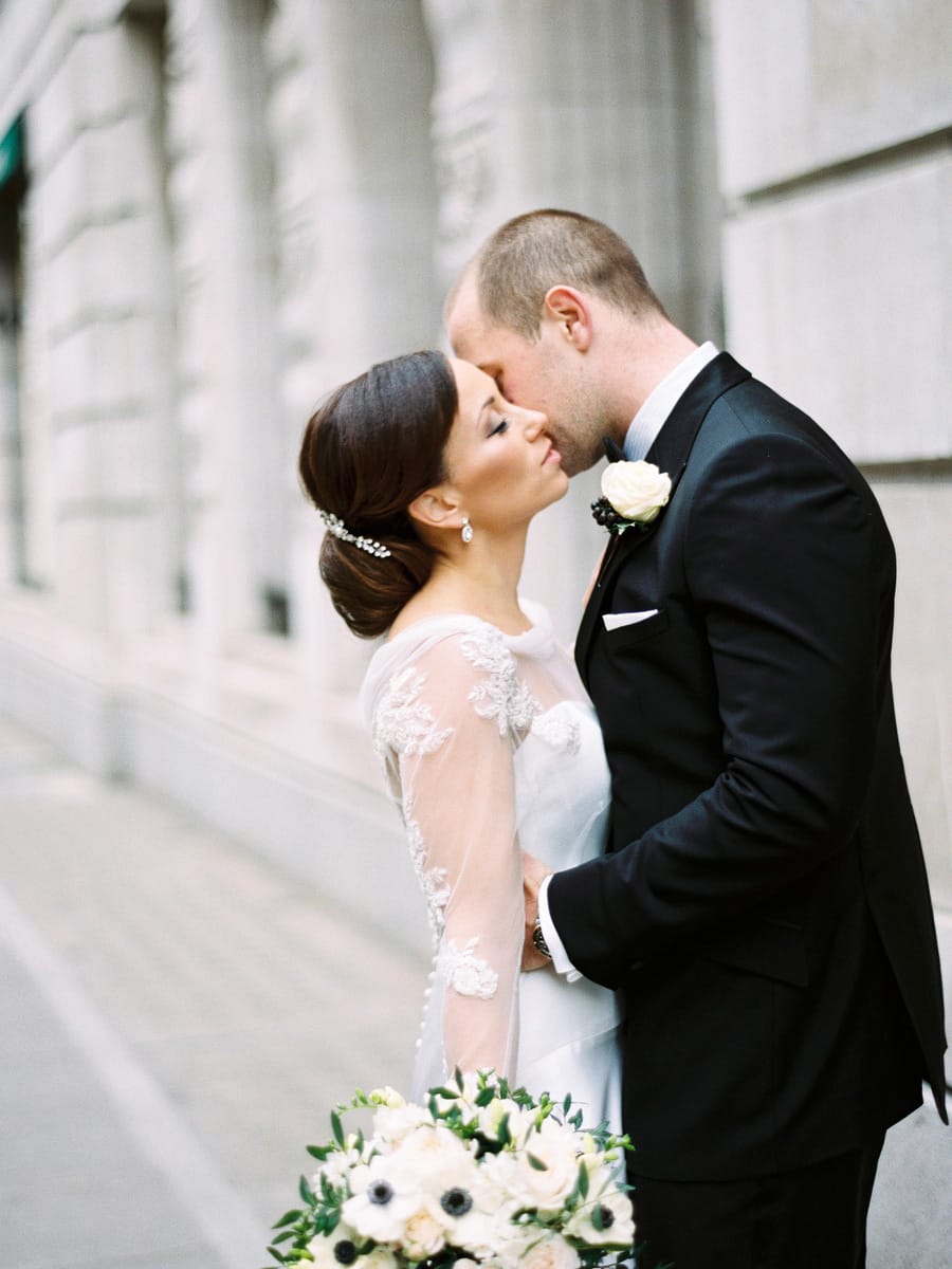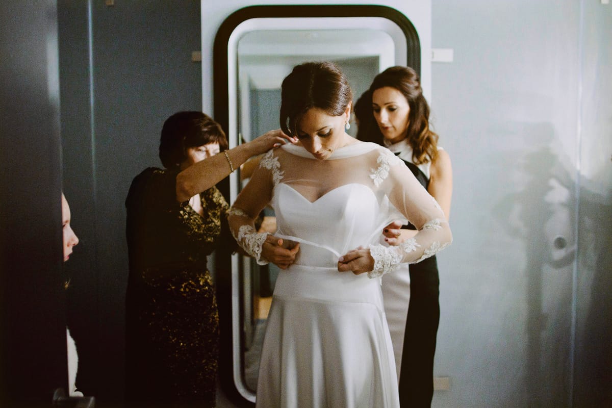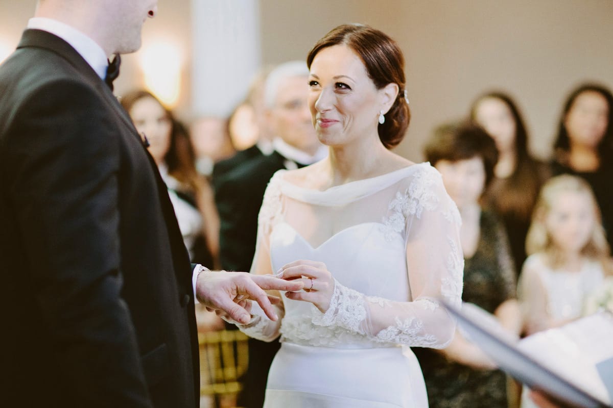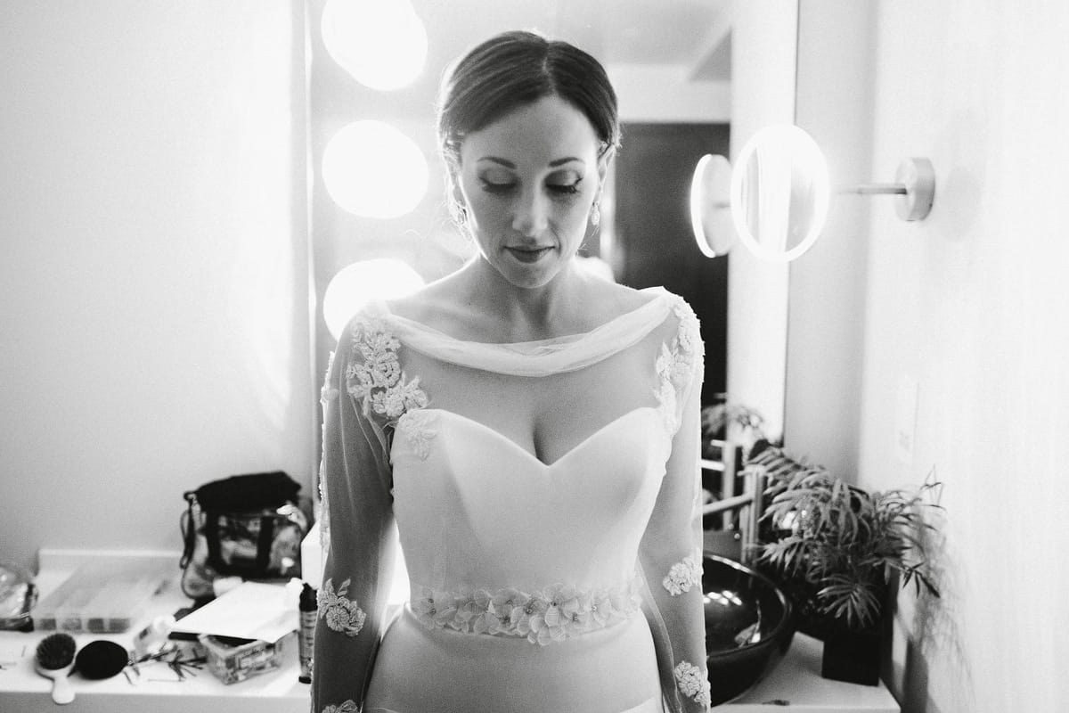 My dress was from Suzanne Neville. I had a custom lace top created for the day, which I removed in the evening and added a customised diamante black belt instead. Glamorous, luxurious and cut to fit, I instantly knew that my dress was the perfect choice for our black-tie city wedding.