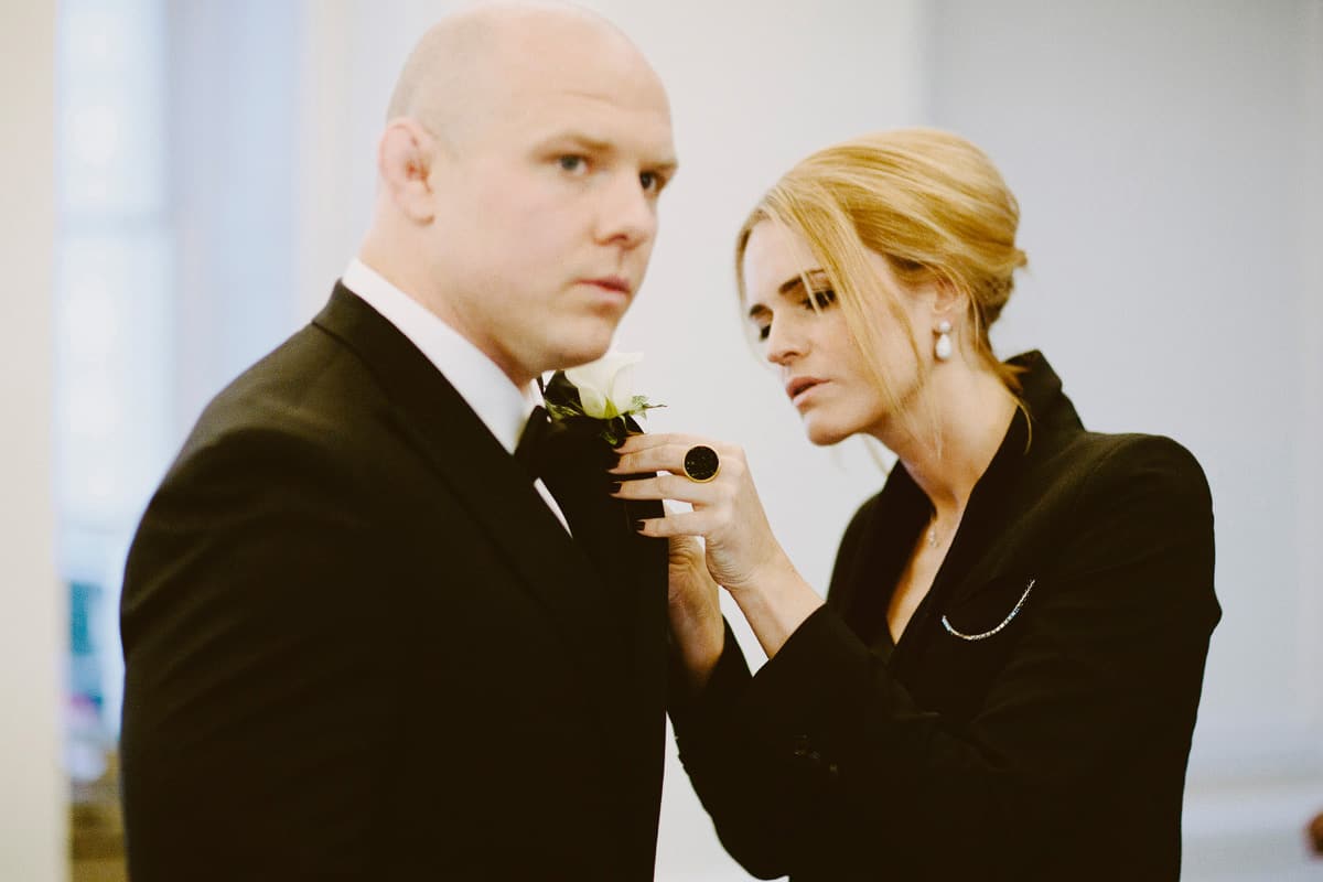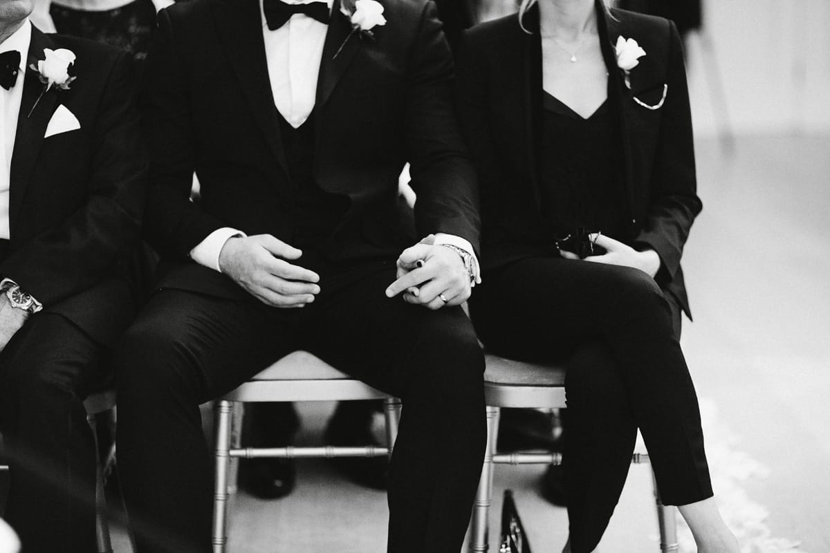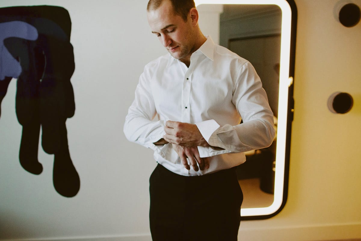 Matthew’s suit was a made to measure tux from Reiss and his shoes were from Cheaney. To complete his outfit, I’d given Matthew a pair of wedding cufflinks from Mont Blanc.