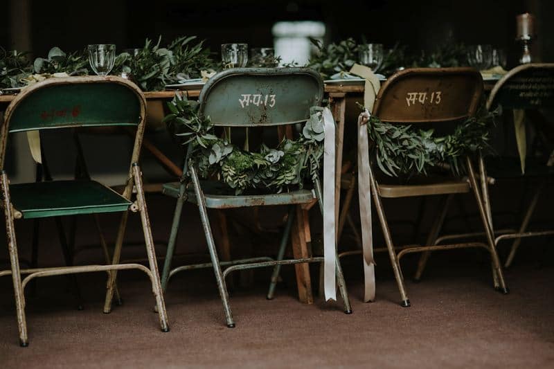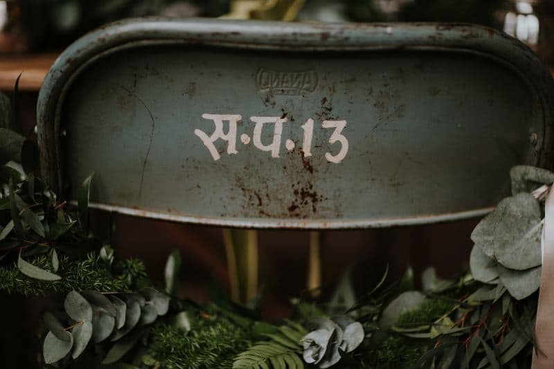 Our seating and tables were supplied by Emma at The Great Event who sourced some fantastic chairs from an Indian cinema alongside rustic wooden trestle tables. I fell in love with them and they worked brilliantly with the palette of plaster pink, navy and browns and the perfect contrast to the Lux look that we combined around them.