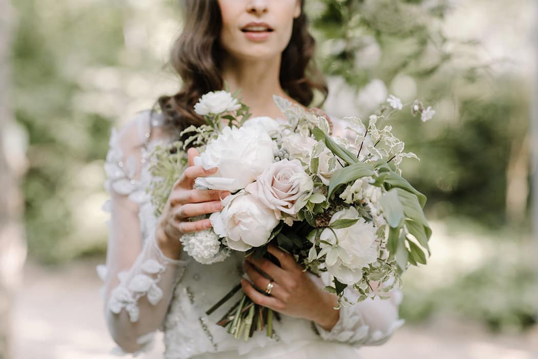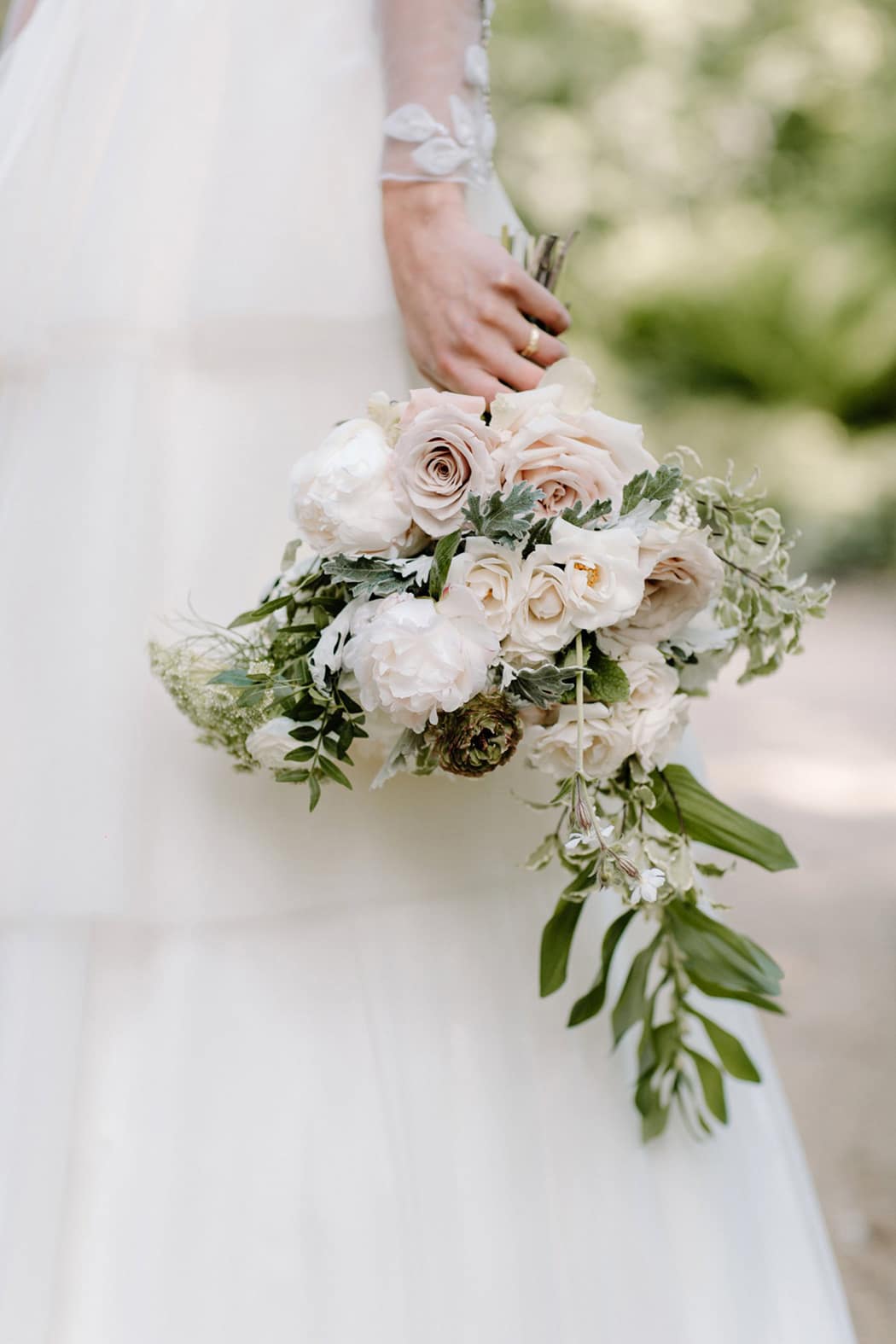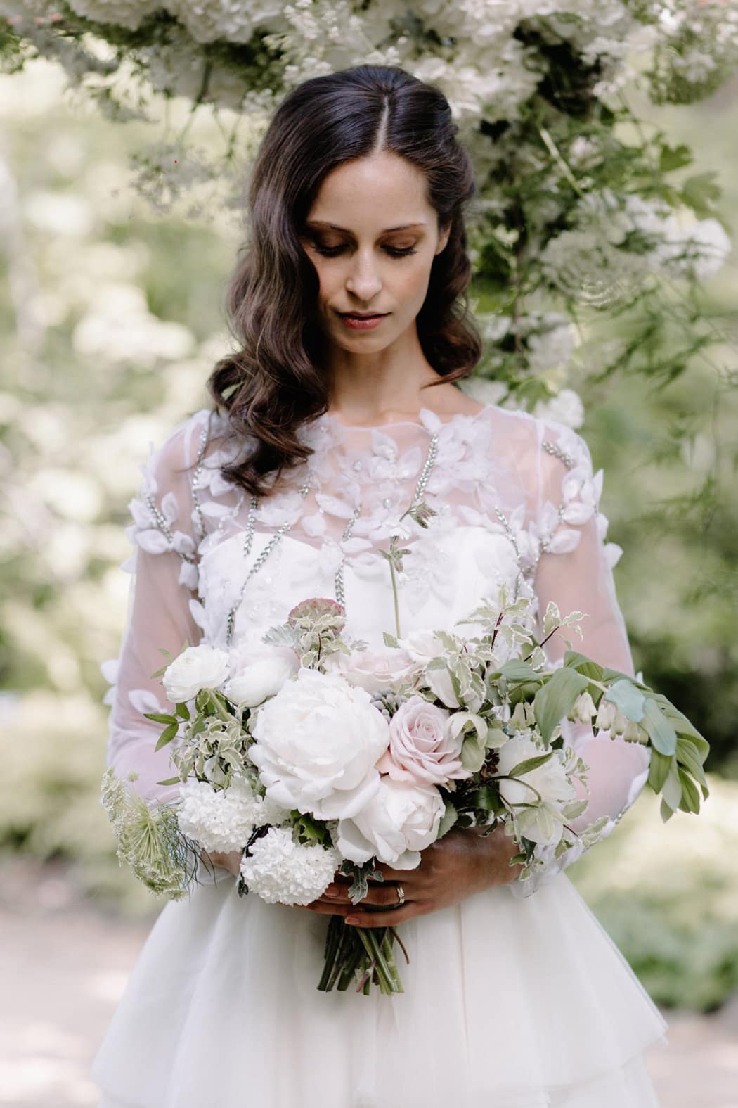 We wanted the tablescape to blend into the gardens but still have a contemporary feel – with modern tableware and botanical inspired stationery by Nat’s Paper Studio, sitting under a cloud of fluffy white hydrangea by our florist Bloomologie.