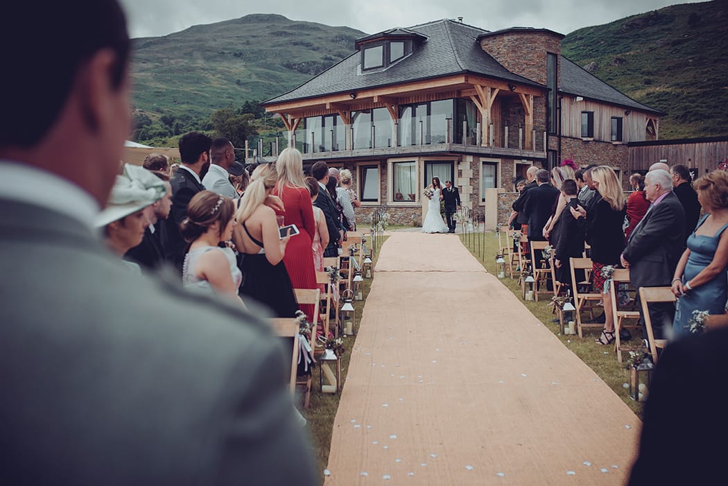 The wedding was outside on the front lawn, we stood with our backs to the loch and everyone sat watching the ceremony with the loch and mountains in the background. There was a stretch tent next to us on the front lawn for the drinks reception. This was a perfect distraction for people while Lee and I ventured up the mountain in the tank to take some photos with breathtaking views.