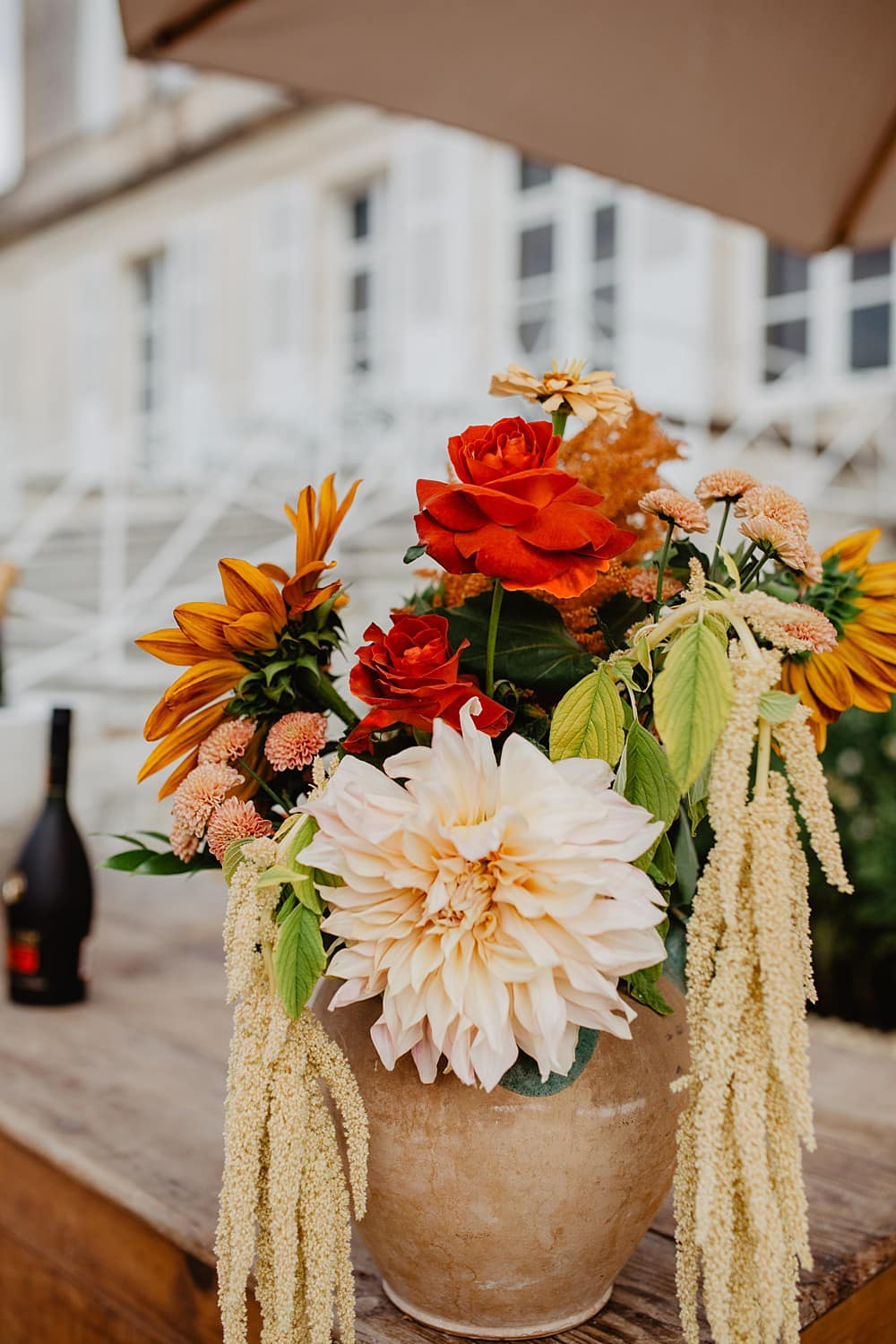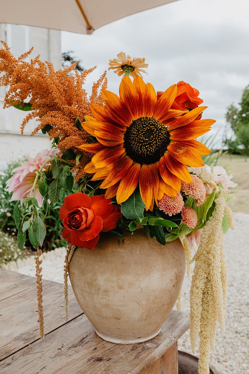 On the day, there was a warmth from the design. When going bold on colours, you run the risk of taking a summer wedding into an autumnal colour-way but the light tones surrounding the tables kept it fresh and bringing in yellow to the flowers kept it seasonal.