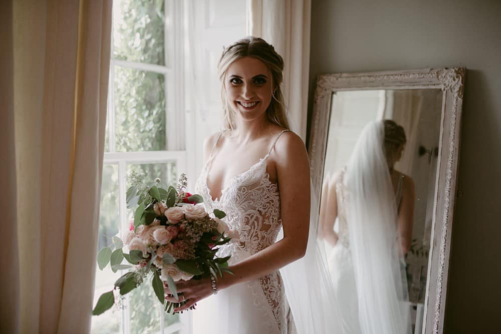 In the Coach House we had a gorgeous ethereal arrangement with cylinder vases holding candles decorating the windowsill, a beautiful arrangement of soft foliage and a cluster of the wedding flowers to look as if the arrangement was naturally growing at the base of the stairs.
