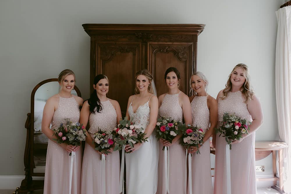 Honeysuckle Flower Co. worked with us to choose flowers that went with our festival themed colours. Chloë’s bouquet had soft pink roses and all other items featured a soft base palette with pops of warm and hot pinks, soft blues and gentle and bright yellows.