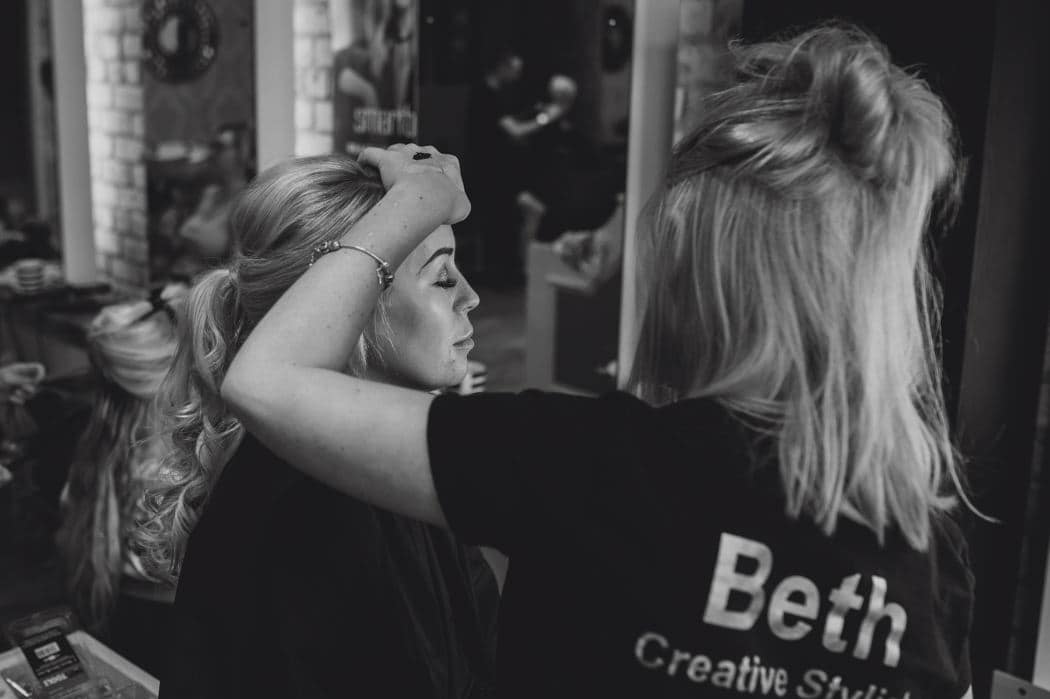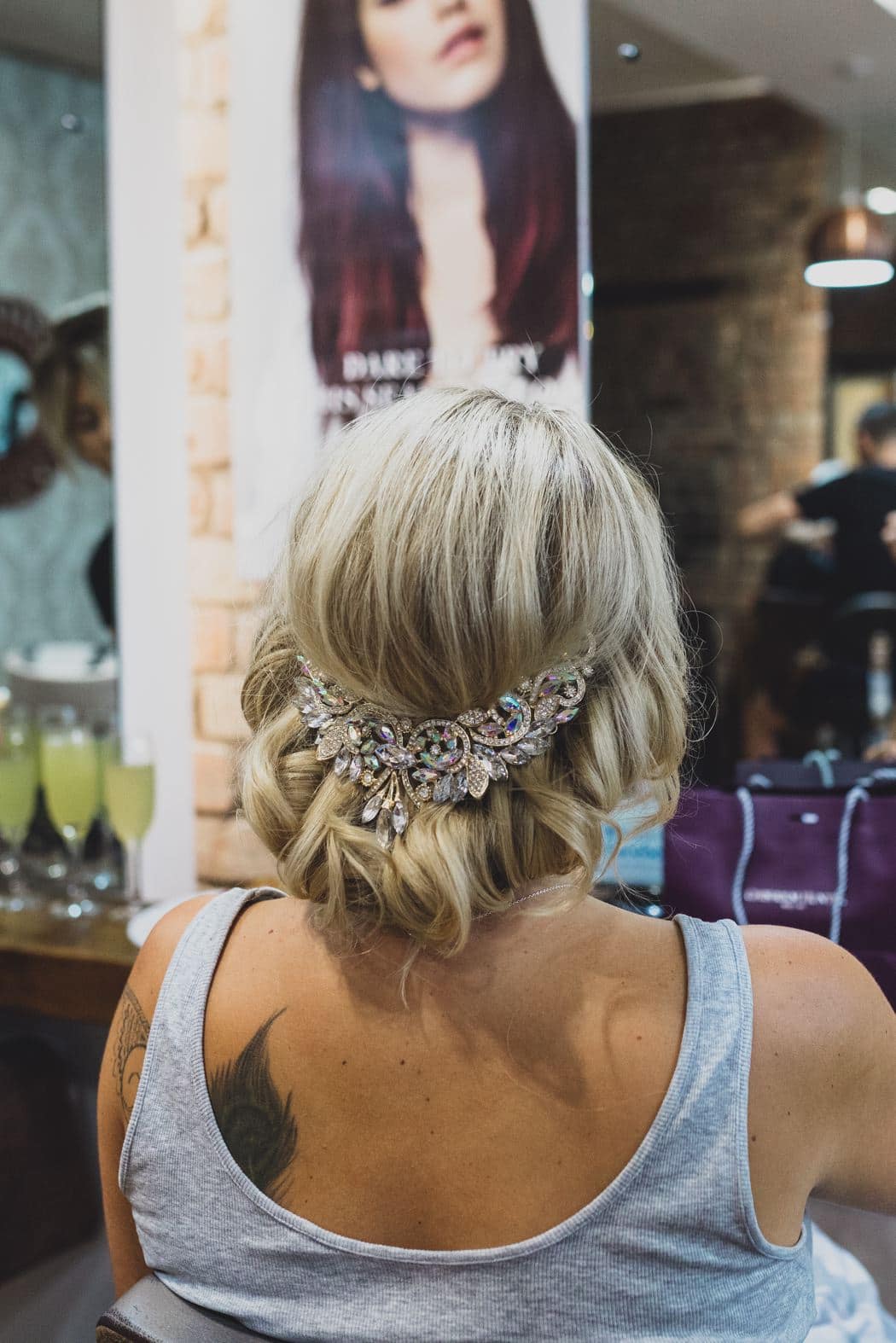 I am lucky enough to own a gorgeous hair salon called Imagine Hair & Beauty Salon in Prenton, so my team created the looks for my whole bridal party. My hair was half up / half down with subtle gold / brown makeup. My bridesmaids had their hair up with baby’s breath, followed again by subtle dreamy makeup. The little flower girls all had something different.
