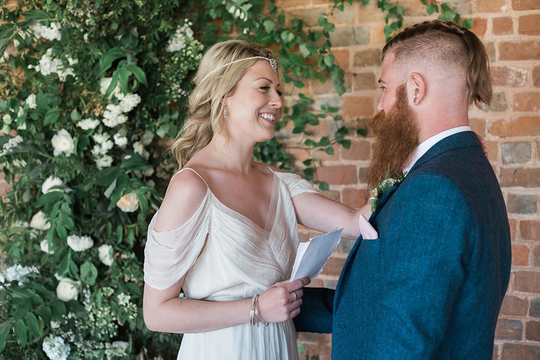 Surrounded by budding vines, the Round House looks out over gently rolling fields towards the coast at Teignmouth; “We’ve had amazing support from the local community and wedding suppliers. It’s really important to us that we use as many local businesses as we can and we’re fortunate to be surrounded by very talented people in Devon”.