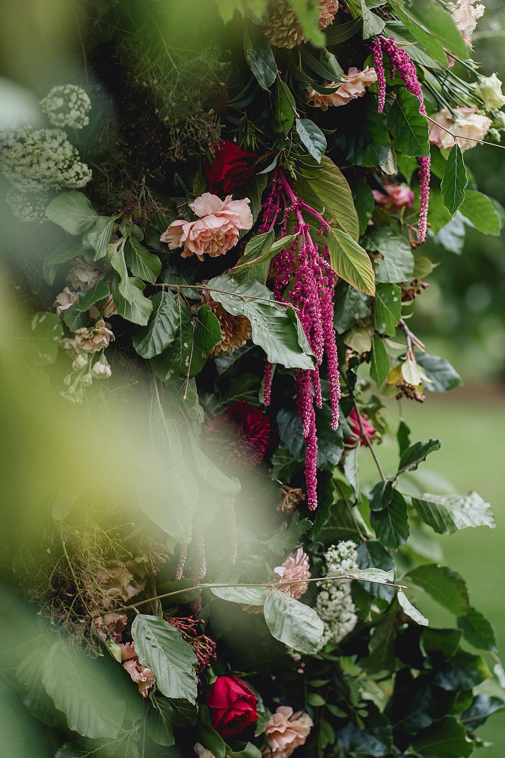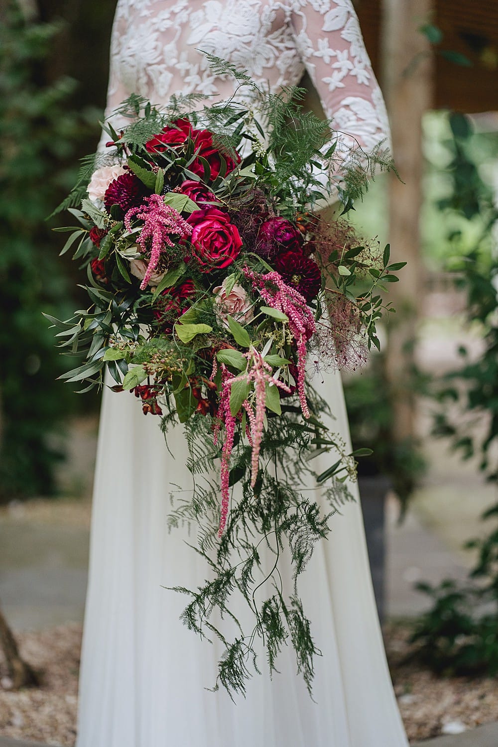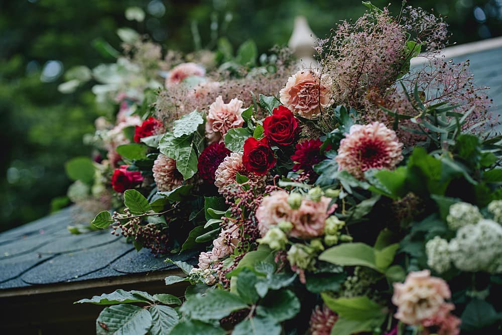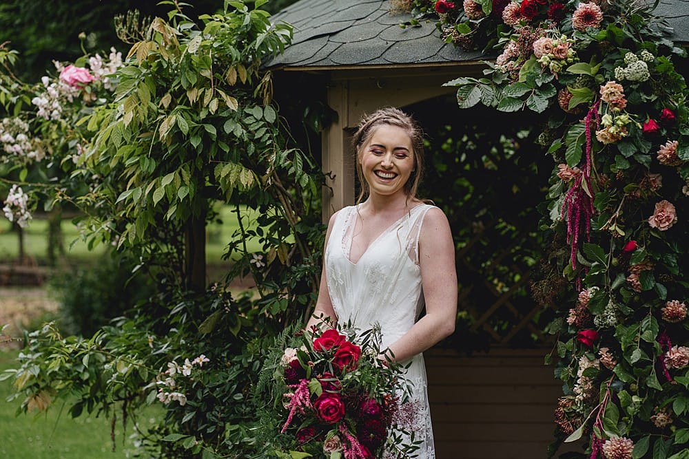 I was totally inspired by the beautiful pergola at Maunsel House and its existing florals. The idea of having the majority of the floral decorations for a wedding hanging from above rather than on the tables lead to a ‘Hanging Gardens’ theme, incorporating not only beautiful hanging floral arrangements but also the interiors trend for hanging pot plants.