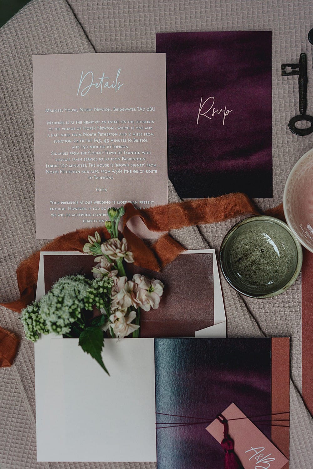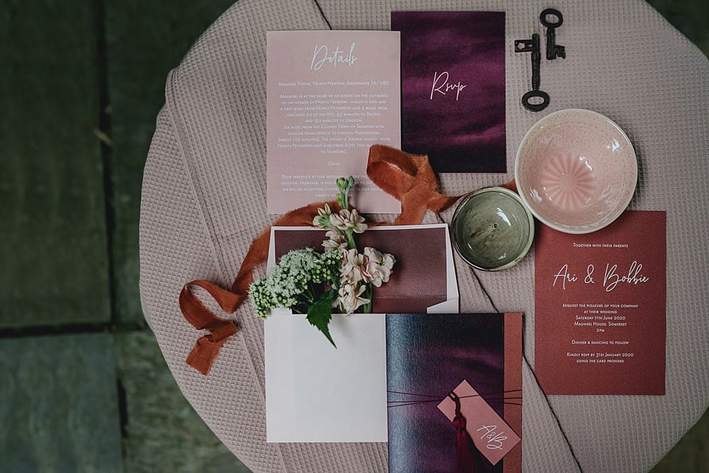 Colour inspiration again came from interiors trends and I really wanted to introduce an on trend terracotta colour into a traditional palette of blush and burgundy to give the colour scheme a bit more of an edge.