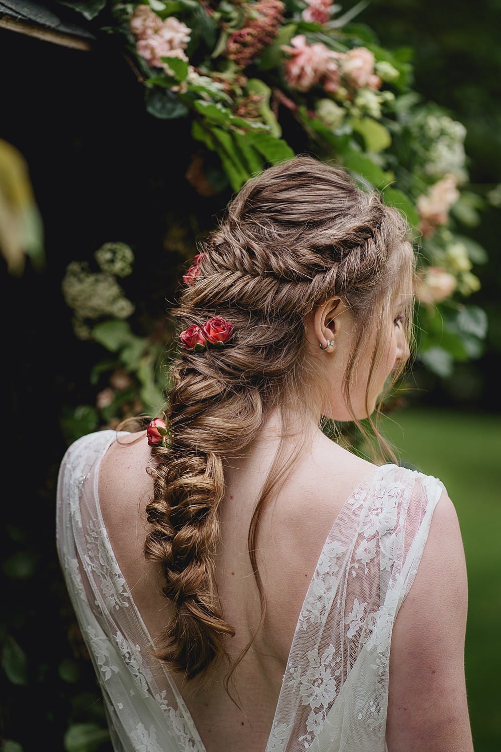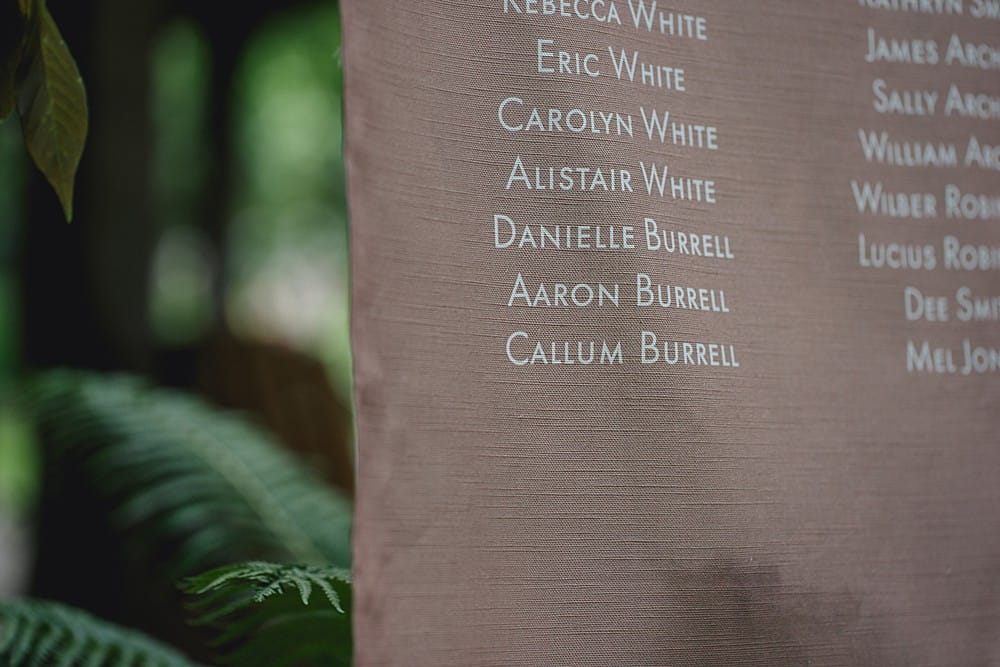 This theme followed on into ideas for a hanging ‘floating’ cake and also a hanging fabric table plan… both of which worked amazingly with the already stunning roses on the pergola.