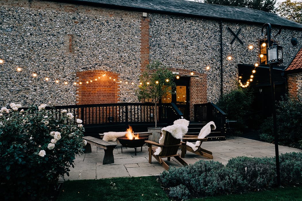 As an exclusive venue, the exterior grounds consist of the beautifully kept courtyard, private driveway and stunning cornfields located at the back of the venue. All provide a calm, quiet and private space for guests to enjoy, whether it be in the fresh breeze of a hot summers day or gathered around the roaring fire pit during the winter months.