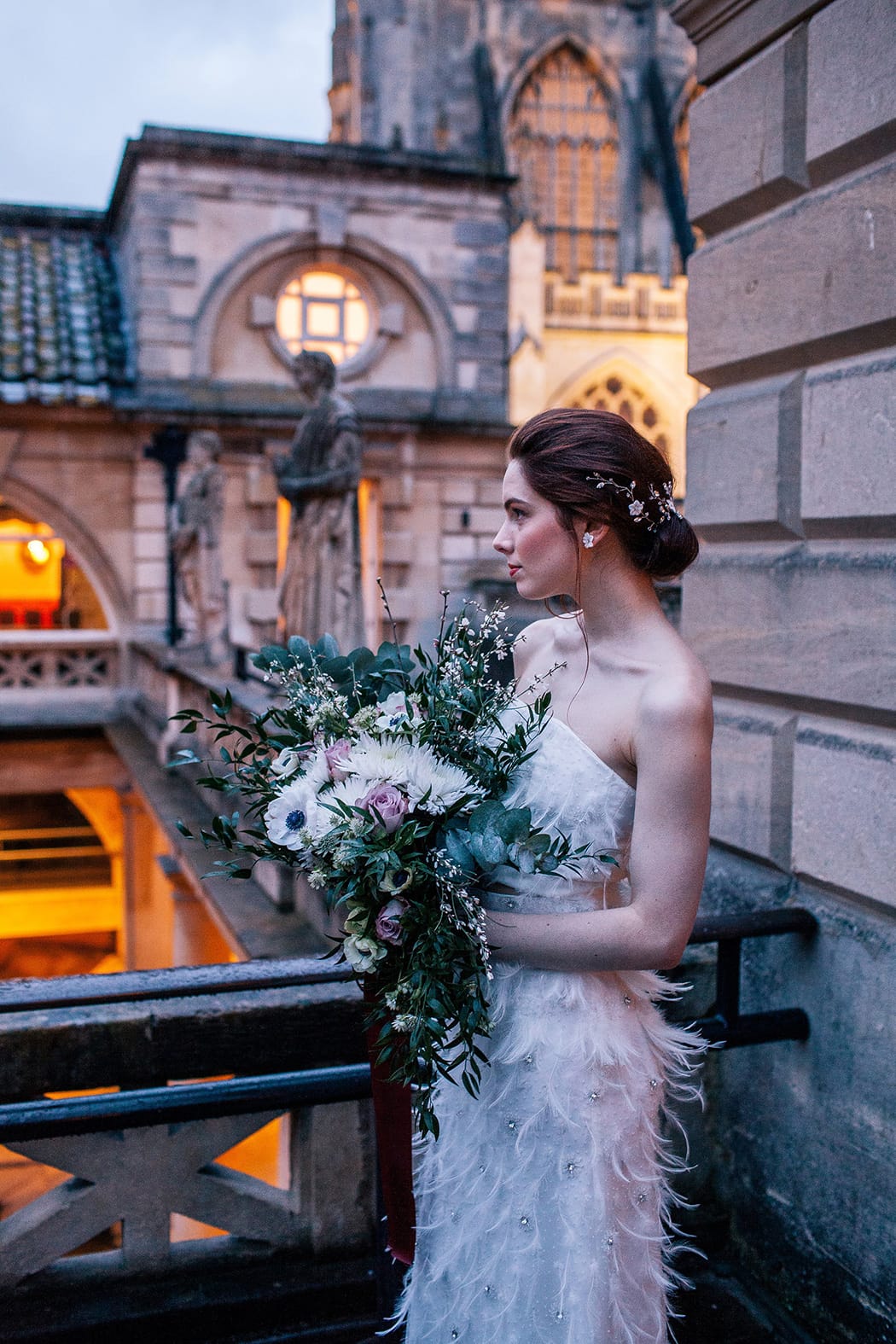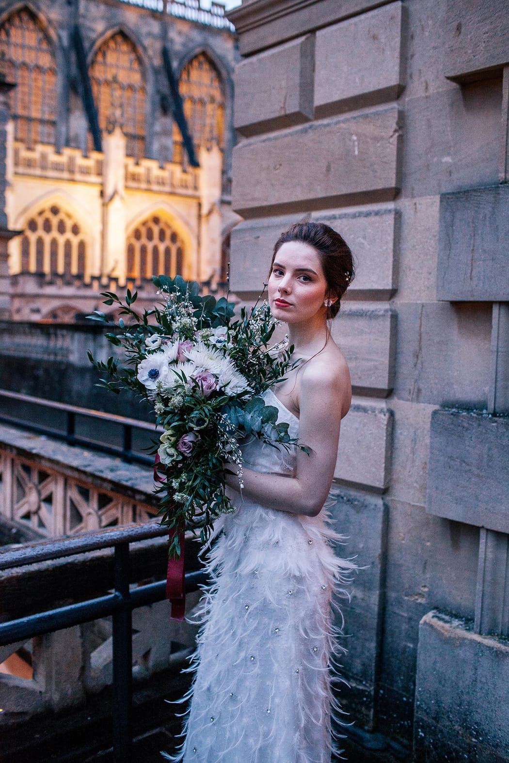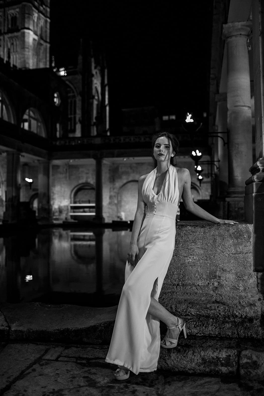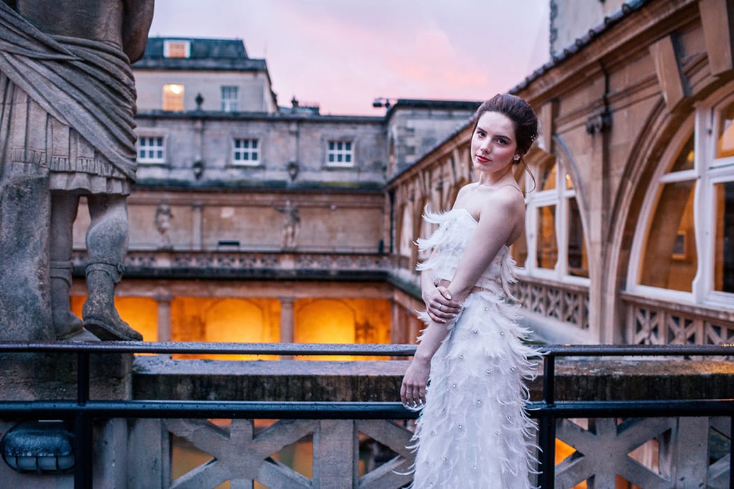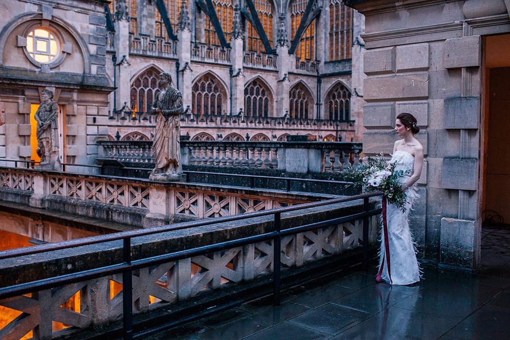 Our first task, once the creative brief had been agreed, was to source our photographer. Emma Leviers, Heart Full of Tea, describes her style as a ‘quirky’ and her gorgeous Instagram demonstrates her ability to capture her couples at their very best and most relaxed. She had also recently shot a wedding at the baths, so knew exactly what she was doing! And yes, you can get married at the baths in the evenings. The baths are roman torch lit, as our images show, and make for a truly romantic and atmospheric setting.