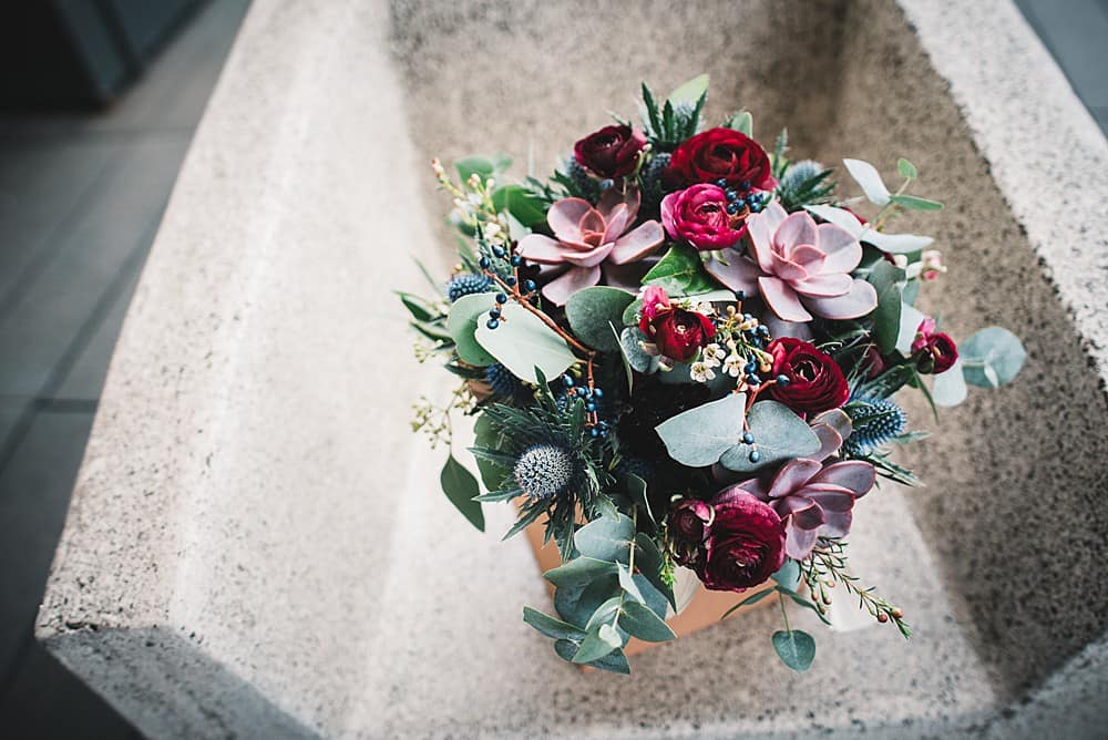 Our flowers where done by a family friend who owns a florist called The Flower School. She was my first choice and she pulled together the most beautiful collection of flowers for us – foliage runners for the tables, dotted with little burgundy ranunculus flowers, hand tied wild bouquets of eucalyptus, thistle, ranunculus, berries and succulents, she even covered two arches in eucalyptus to soften the walkways. We were so pleased with the flowers, one of my favorite things from the day.