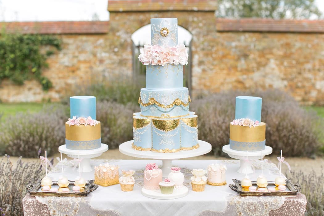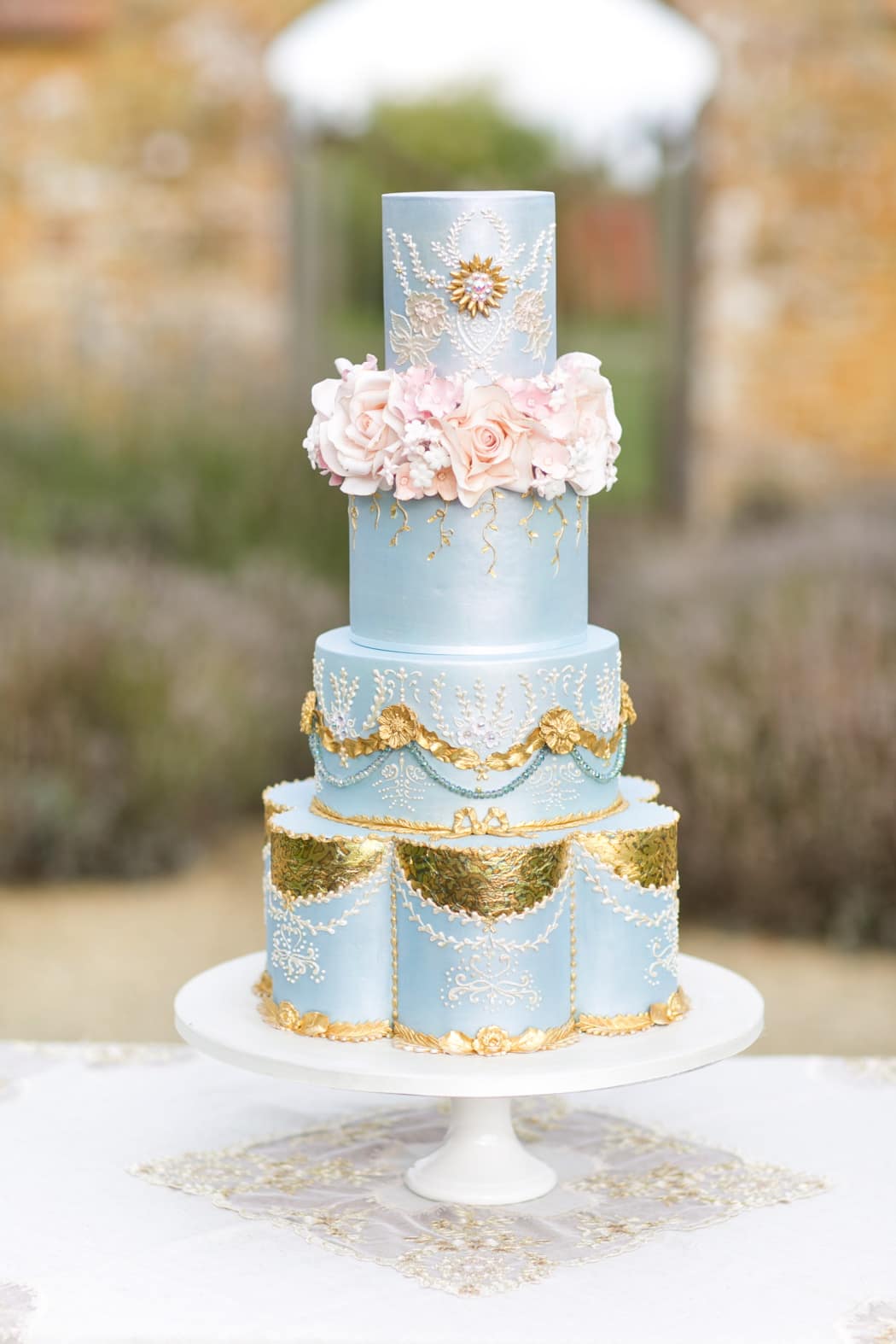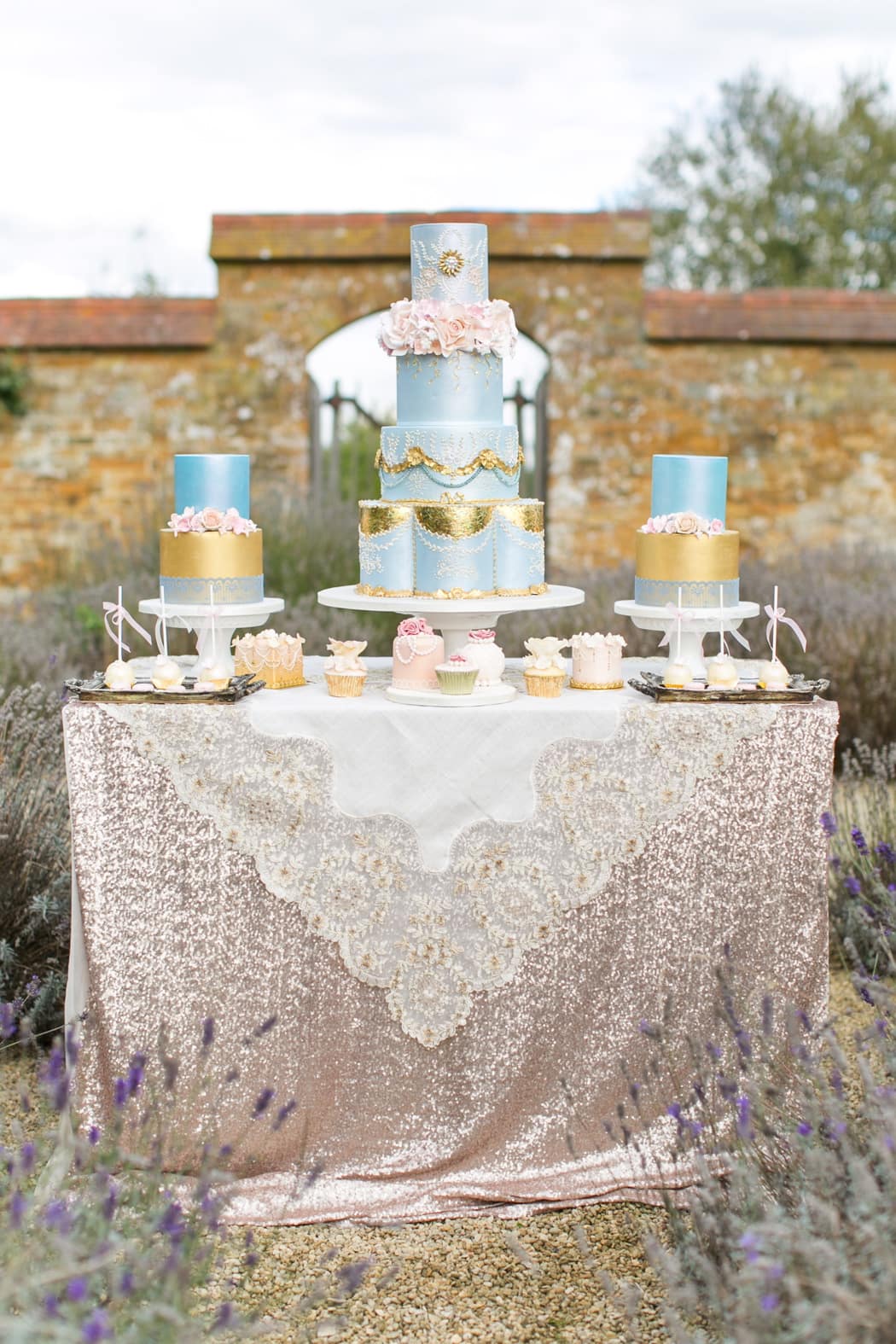 Academy Hire provided the perfect French Louis chairs which sat around the sublime tablescape and settings from Maharani Décor. The elegance and drama of the cake designed by Unique Cakes by Yevnig Cakes against the bejeweled gold menus by Lovelli added the final flourish. The whole setting was an enchanted mid – summer dream. The guests and couple in this magical setting would be whisked away on a hazy dream of golden Country wedding. The colours meshed together every detail of the shoot embedding a mood of joy and laughter for summer weddings world over.