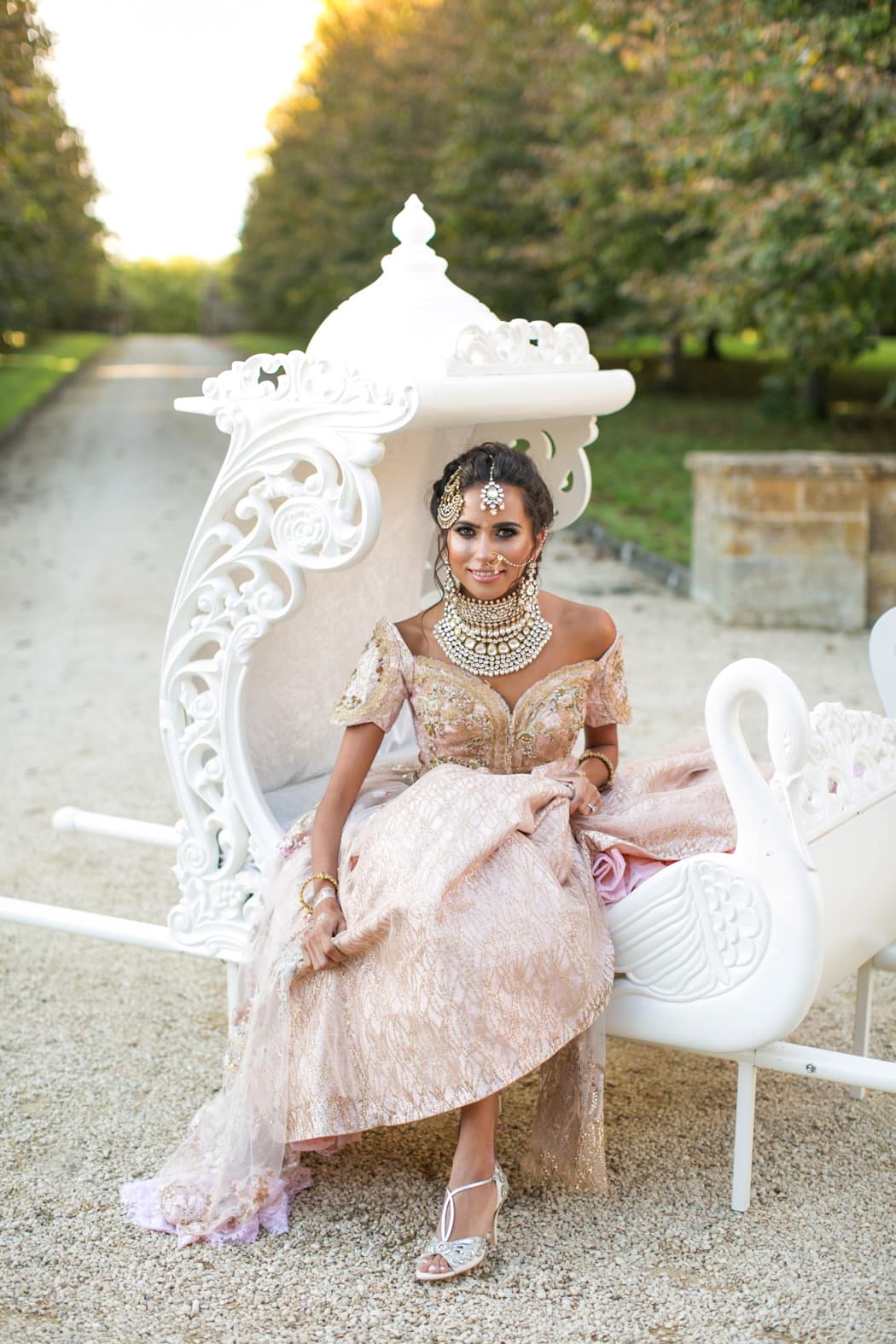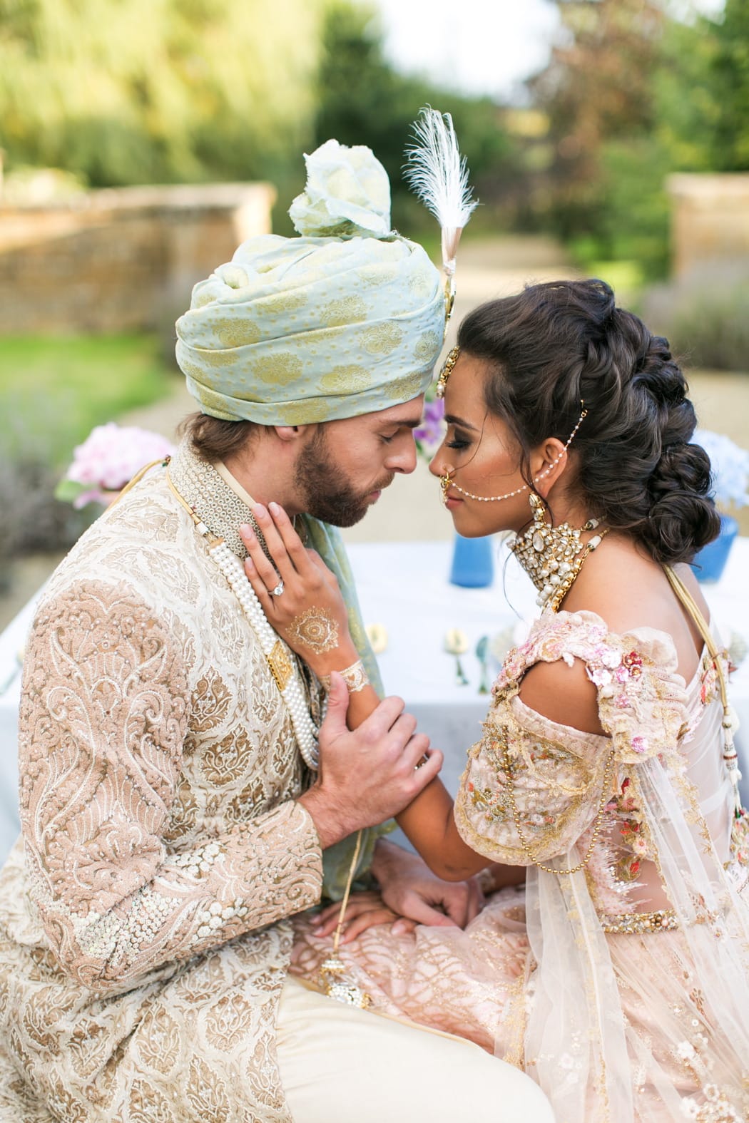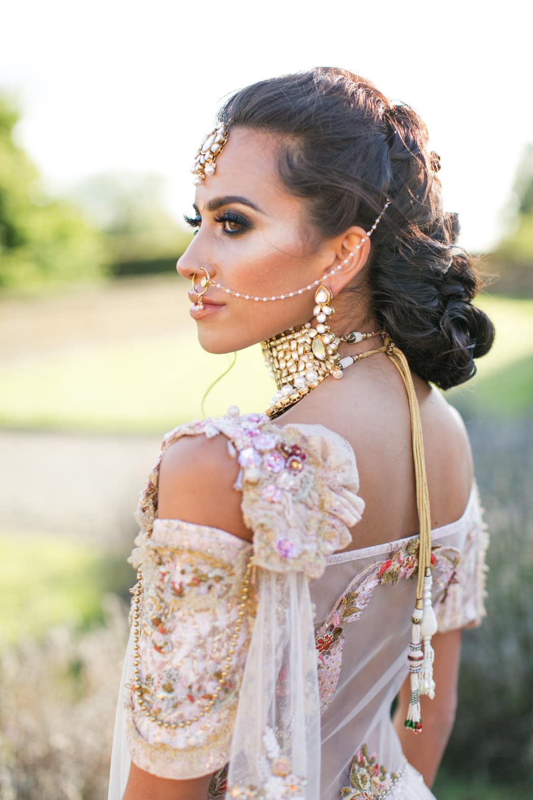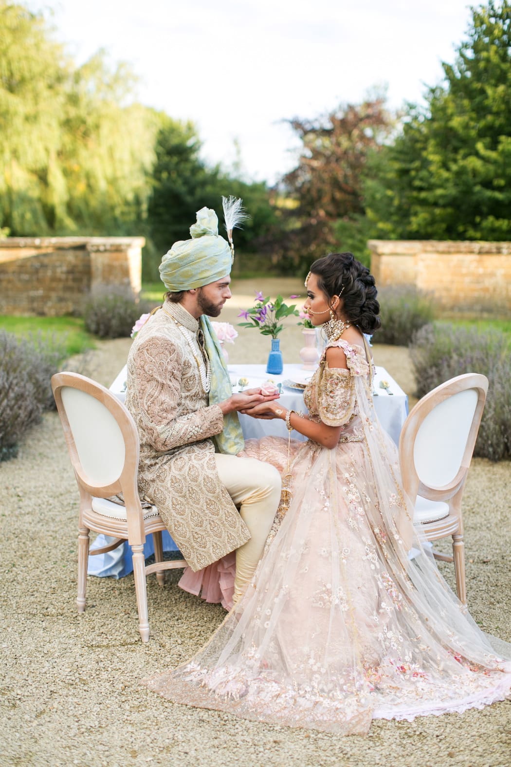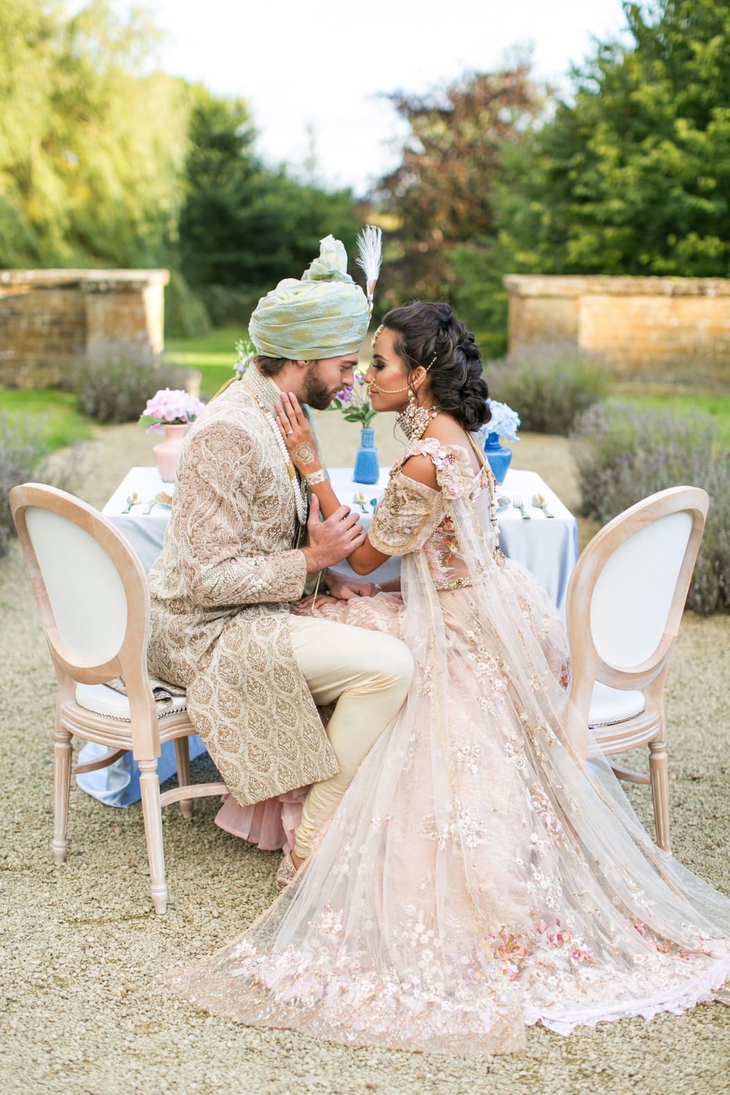 Think of Asian weddings and deep jewel tones and vibrant glamourous metallic shades are conjured up in one’s imagination. I have grown to love these elements as they inspire me to create a rich audacious backdrop for the splendor that is an Asian wedding. This shoot was different though, I wanted to create a different, softer mood which transported you to glorious summer days in the country and so the English countryside became my canvas.