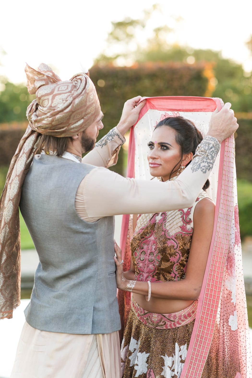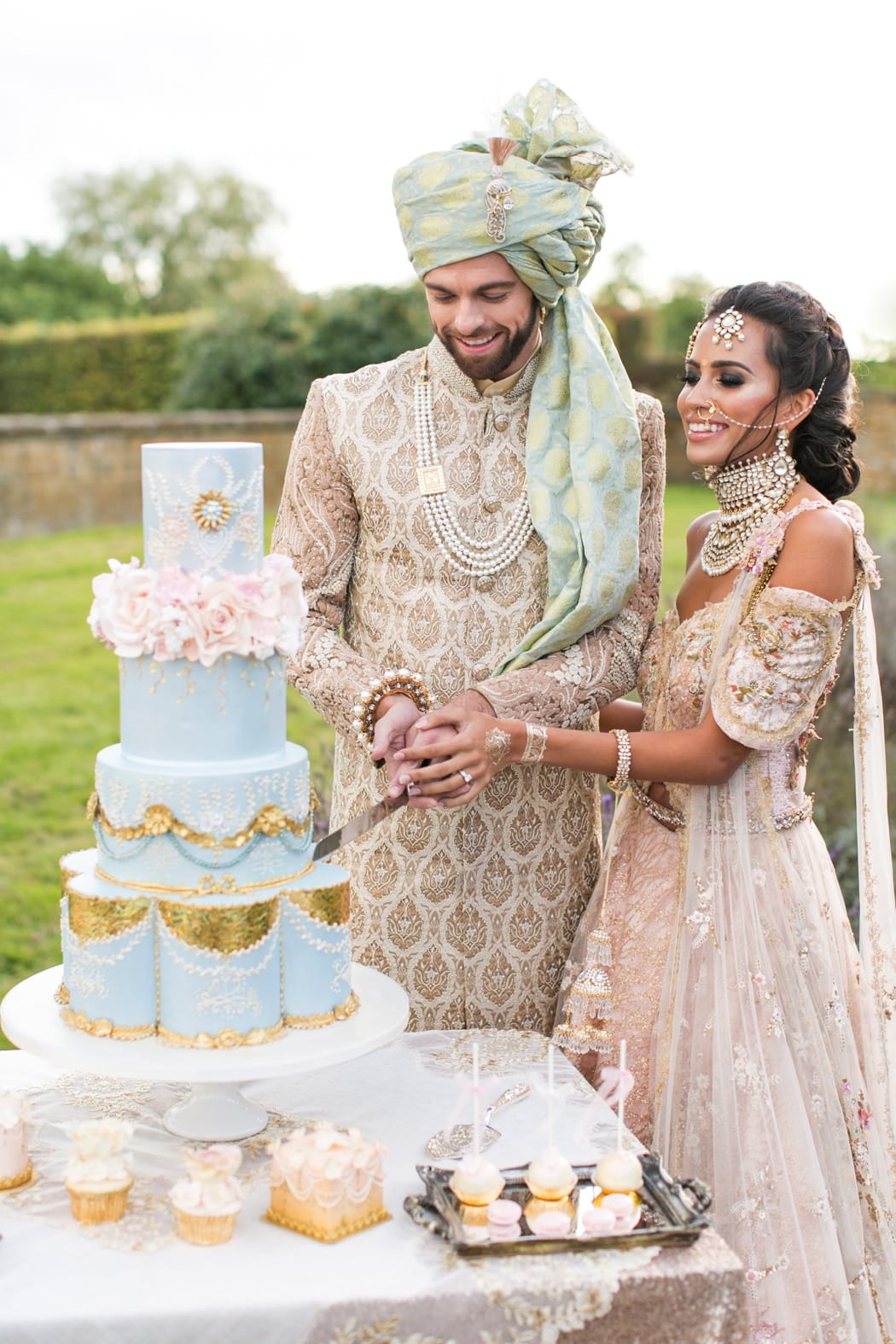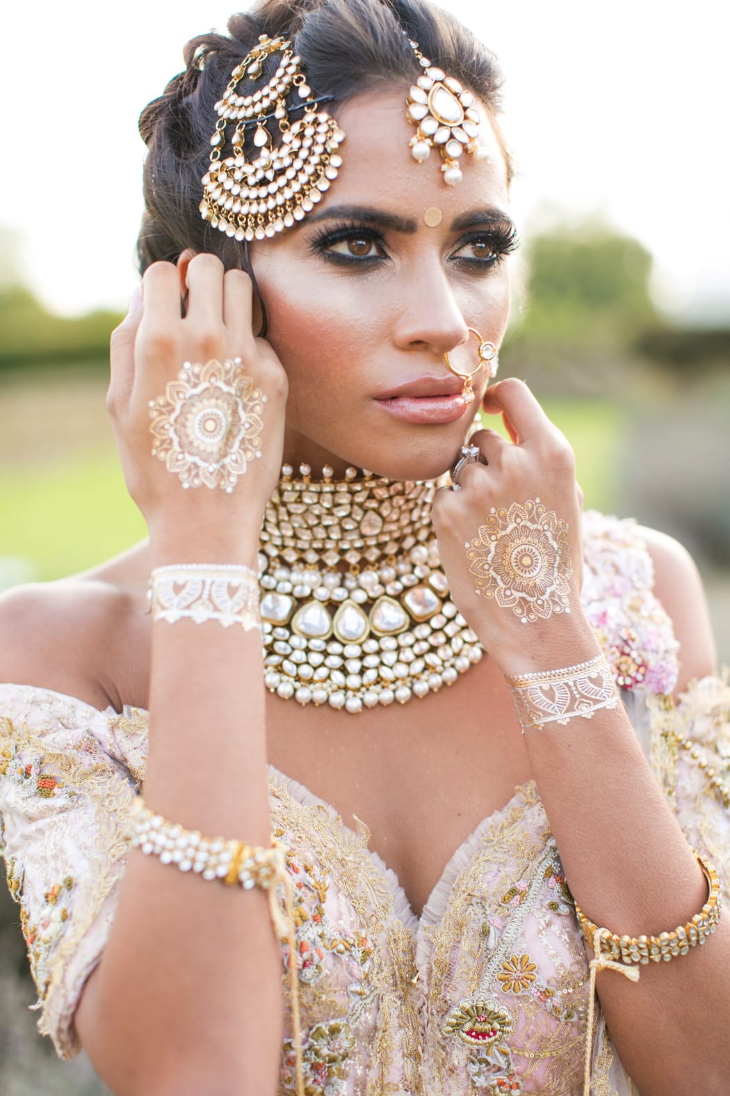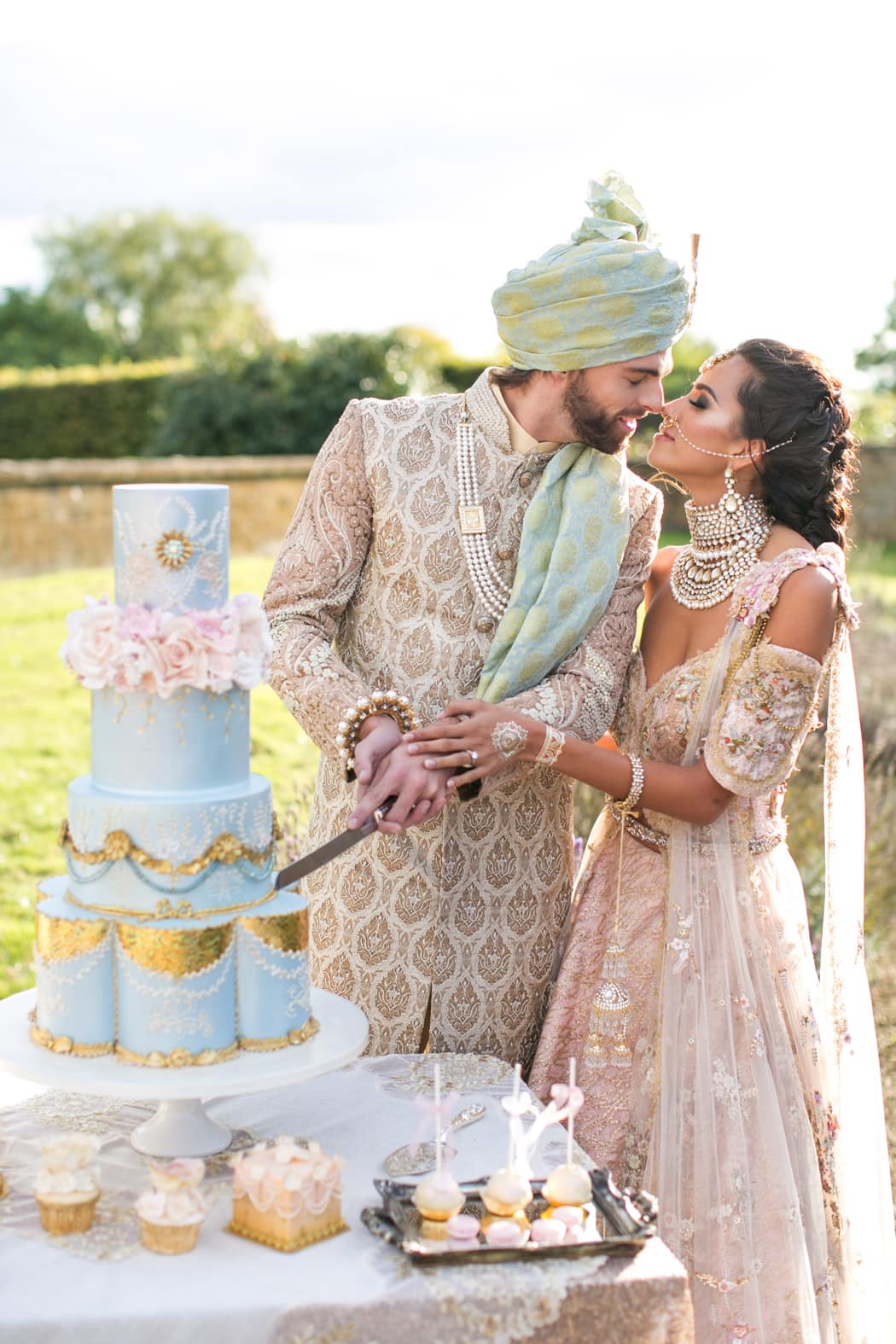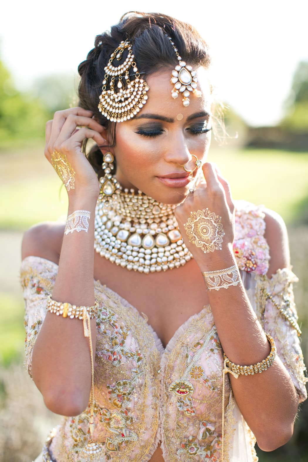 Think of Asian weddings and deep jewel tones and vibrant glamourous metallic shades are conjured up in one’s imagination. I have grown to love these elements as they inspire me to create a rich audacious backdrop for the splendor that is an Asian wedding. This shoot was different though, I wanted to create a different, softer mood which transported you to glorious summer days in the country and so the English countryside became my canvas.