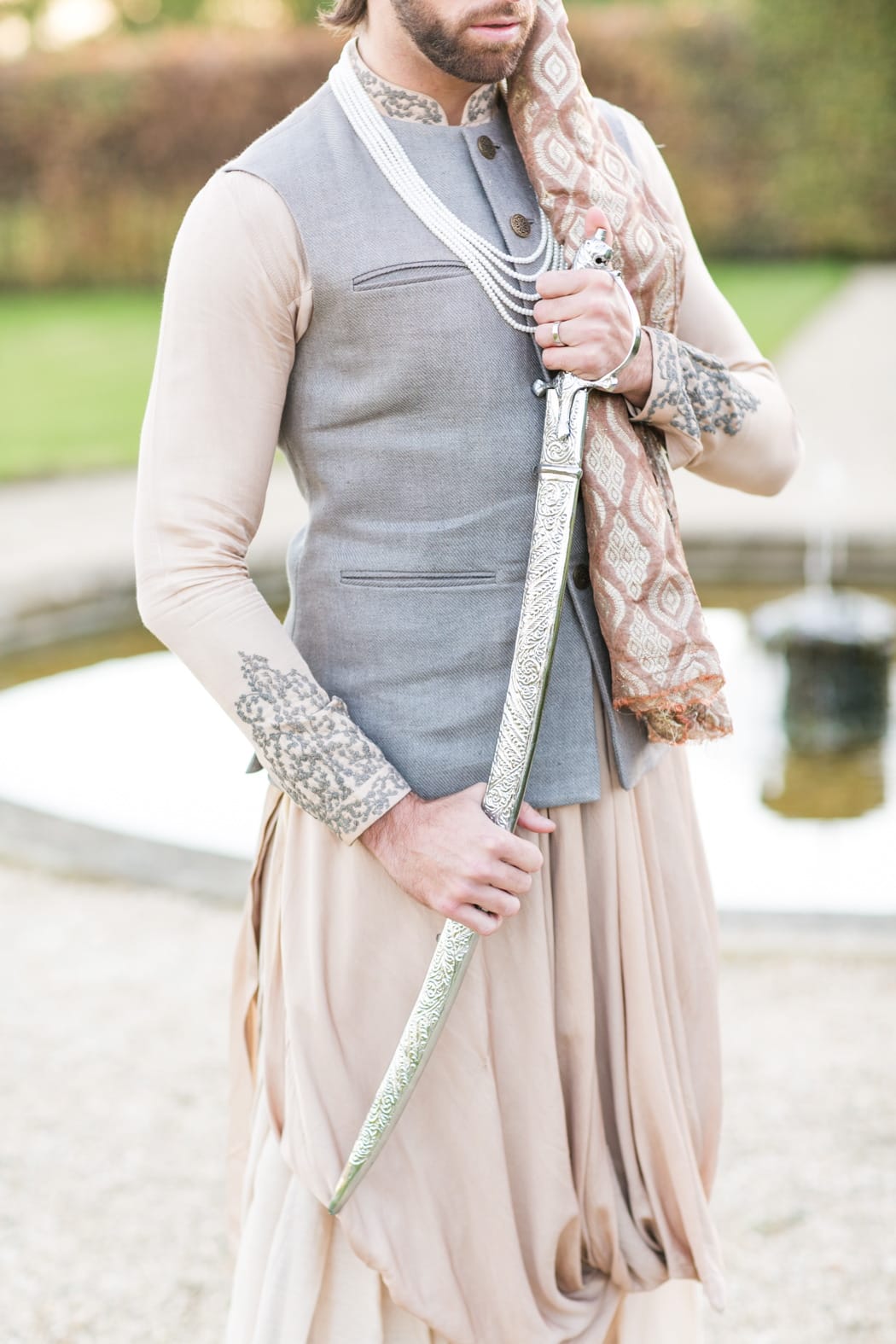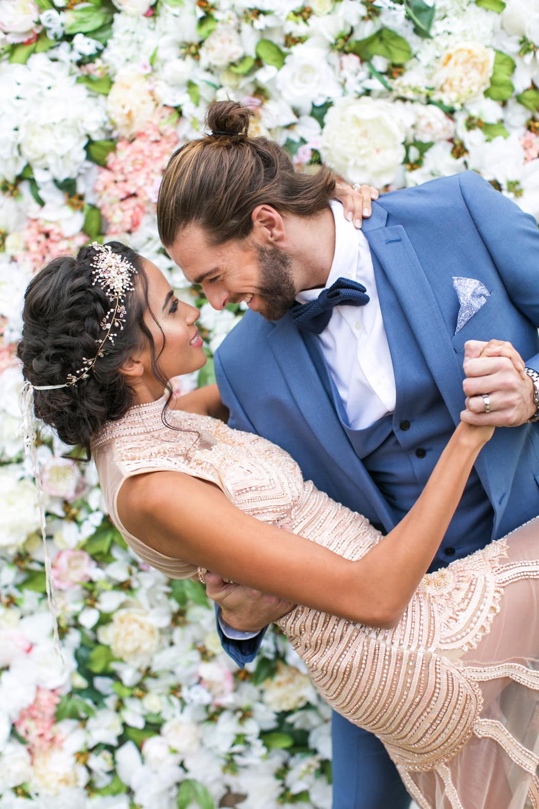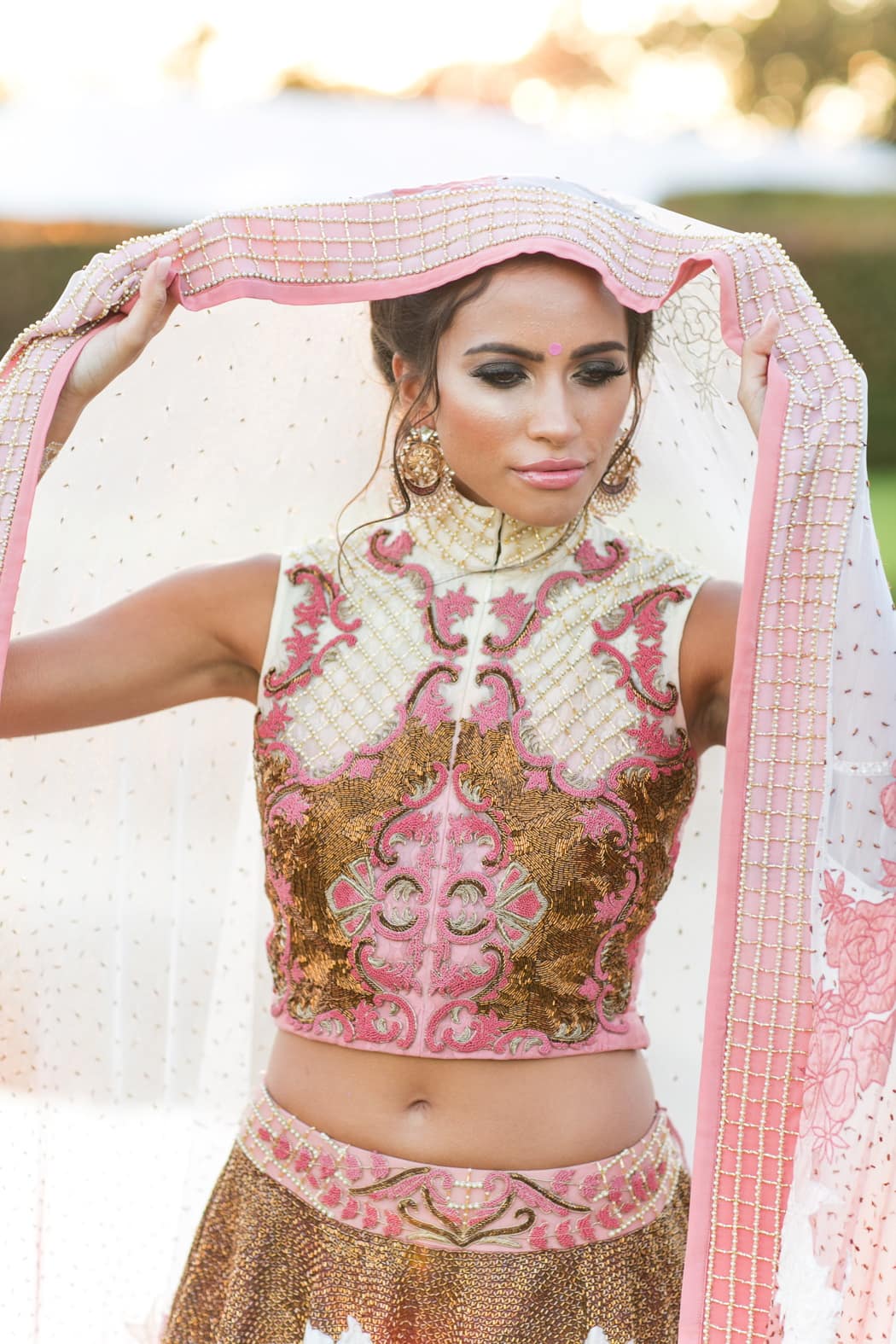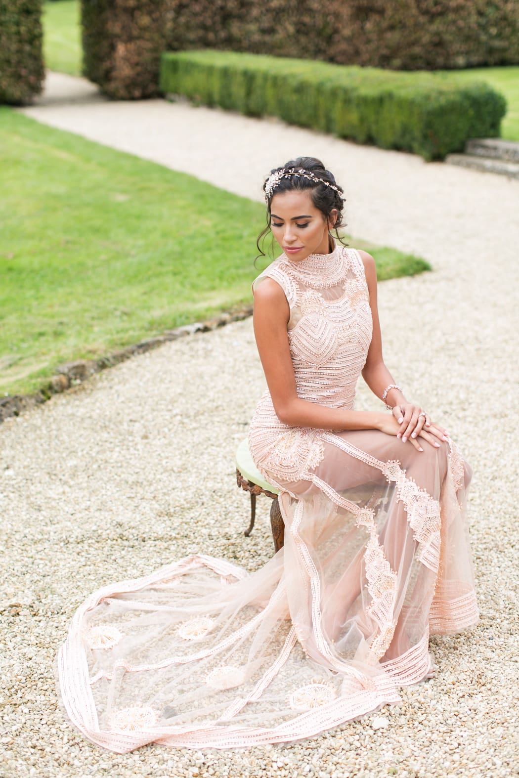I instantly fell in love with the modern blush and gold couture gown from Soltee, I knew that it would work beautifully for the bride outfit giving it a traditional but contemporary edge.
