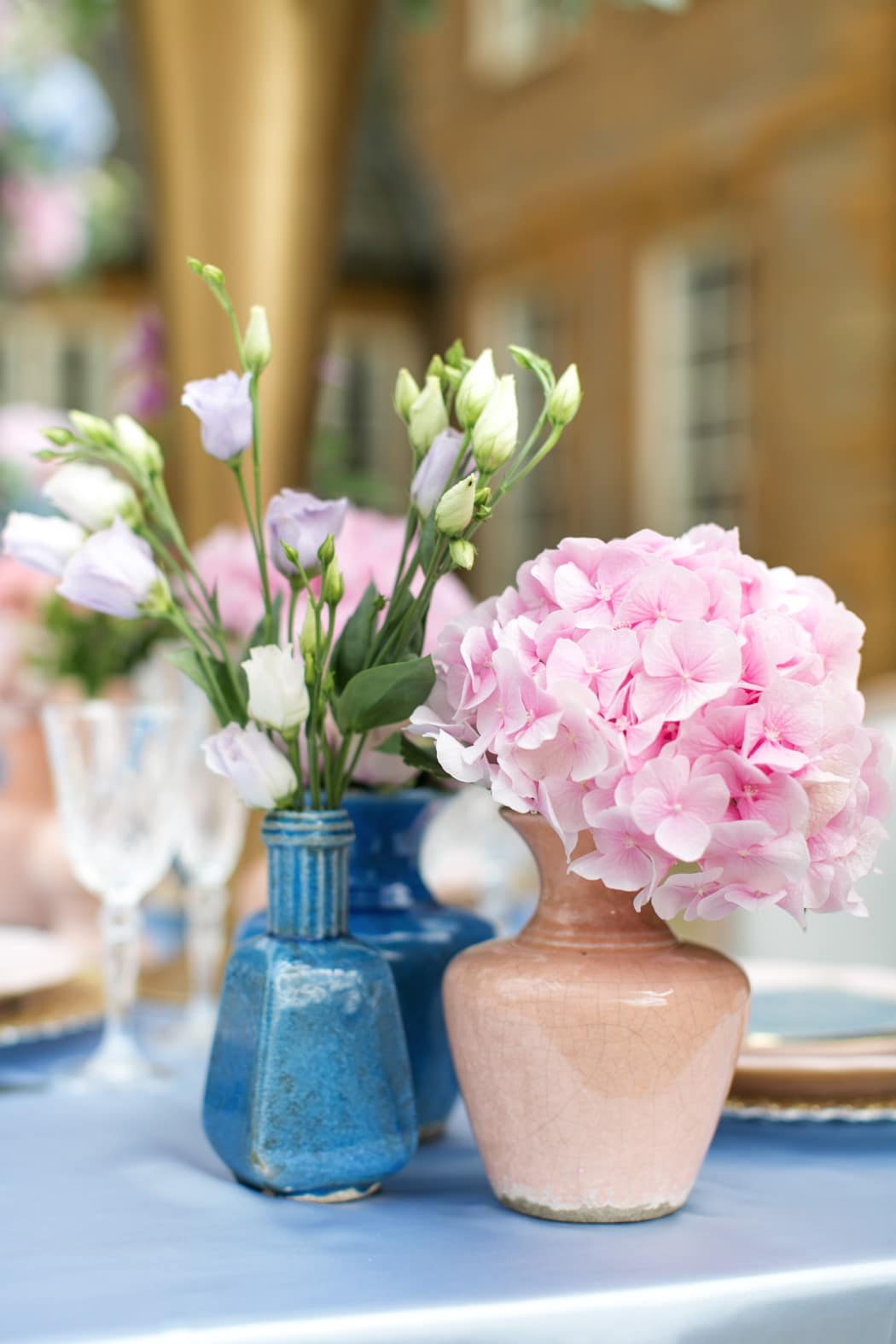 The softest blush pink boutonnieres with the vivid blues shades of hydrangea blue against the greens, ivory, and gold foliage, Miriam’s arrangements captured the style and grace of an quintessential English garden. From classically styled bouquets and arrangements to captivating centerpieces, Miriam helped create the day of any bride’s dreams. The centerpieces and the bride’s bouquet featured roses and hydrangeas with cascades of delicate ivory ribbons which could have not been more sublime.