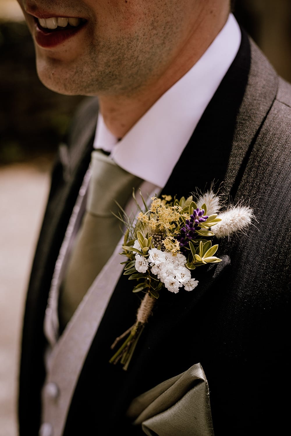 The bridesmaids had floaty sage green dresses, and the groomsmen wore morning suits with sage green ties and pocket squares. I didn’t particularly want a colour scheme, so chose a natural colour in keeping with the bucolic venue. There wasn’t much to organise for Sam’s look – the suit was sorted and he already had some black shoes! It was just a matter of making sure he’d had a haircut recently, had some cufflinks, and wore matching socks (bright orange). On the whole, a far more chilled approach than mine!