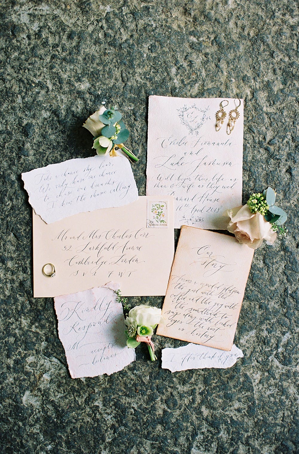 Handlettered and watercolour deckle-edged paper goods created by Laura E Patrick, and rolled beeswax candles, finished the look. L.K.Bennett shoes and an Antique Jewellery Company ring ensured the finest British style was represented, and Leanne (the Baking Chick) created two breathtaking, minimalist cakes.