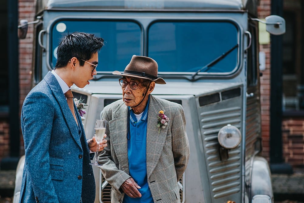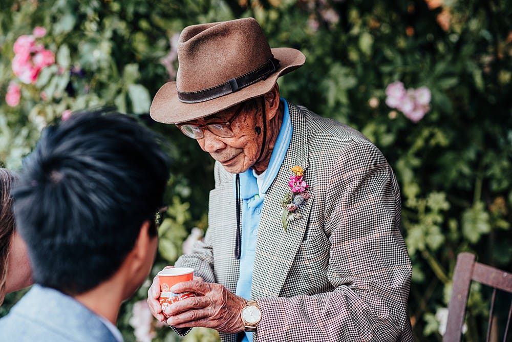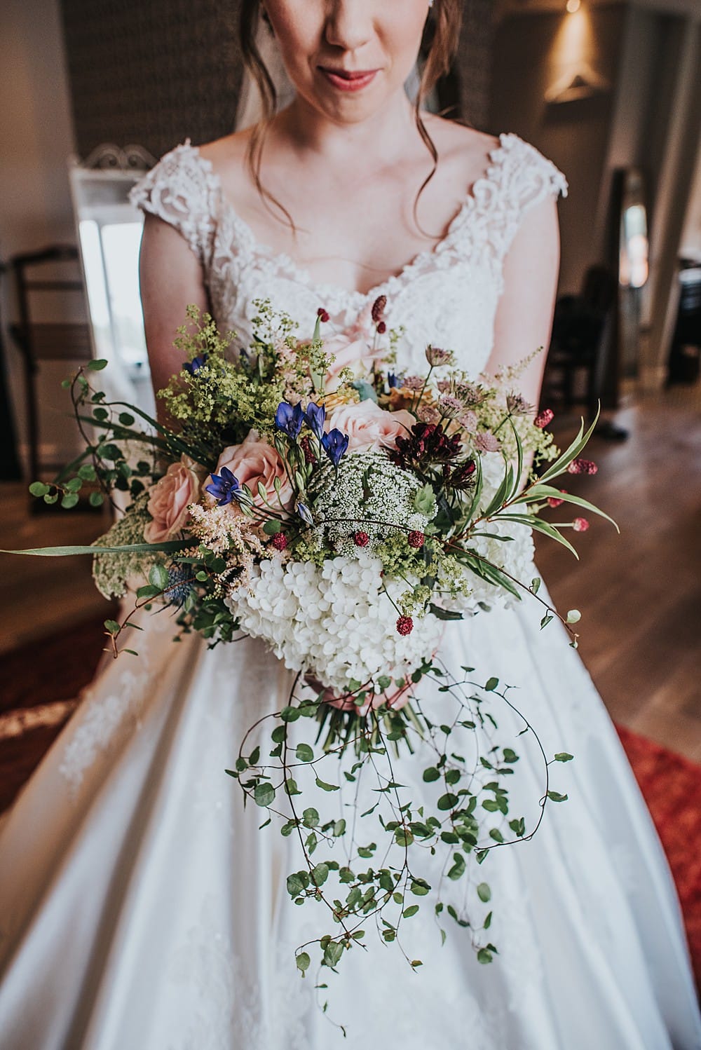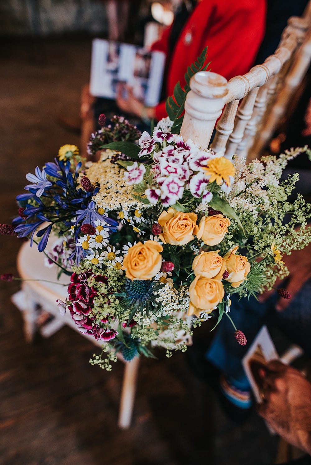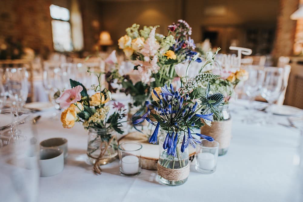 Our florist, Samantha, from Spriggs, really helped to cement our vision. Samantha knew the venue well and she seemed to “get” us too. She took our mismatch colours and vague ramblings and made them into everything we imagined and more! She created an informal, just gathered look for my bouquet and unique corsages and buttonholes for each person. Our centrepieces were jam jars wrapped in twine on log slices. Samantha filled the jars with meadow flowers and mixed foliage and this was echoed through all our other floral arrangements.