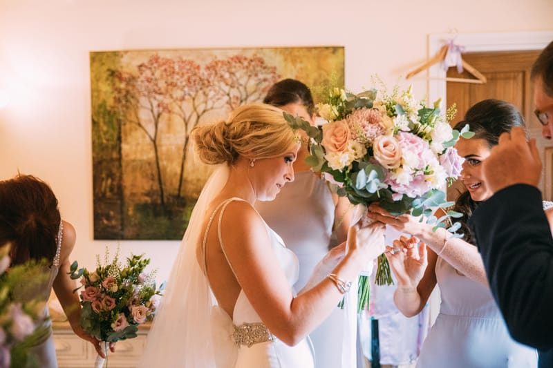 Pete wore a blue three piece suit by Ted Baker with a white shirt and a pink bow tie. My bridesmaid dresses were from ASOS, they mirrored my dress beautifully.