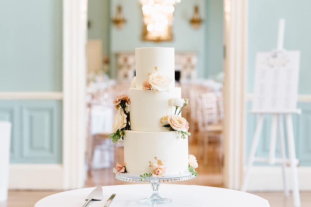We had a three-tiered cake with gold foiling and flowers as decorations. We wanted flavours that were light but also packed a punch. Vanilla was a base for each layer with some including pistachios – raspberry filling was an excellent addition in between the layers.