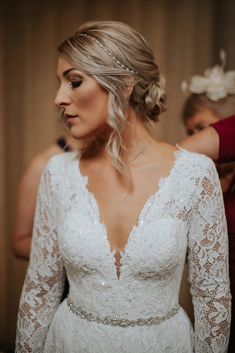 My dress was by Maggie Sottero which was from Serendipity Brides in Daventry. It was a lace A-line dress with sequin sparkles, a very full undercoat, and a gorgeous long train. My hair vine was by Ivory & Co, my feather cape was from Lace & Favour and my shoes were from Ted Baker. Katie Jane Whitlock did my hair; she is amazing at boho wedding up-dos, I was really happy with the result!