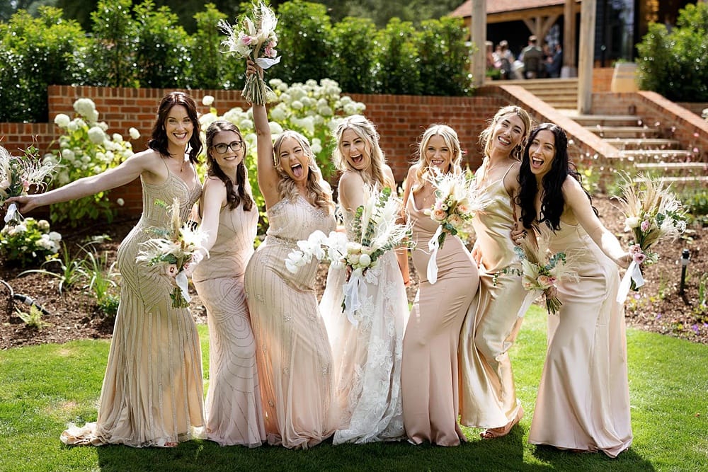 My bridesmaids wore all different dresses as I’d been inspired by a look through Pinterest – mix of natural, gold and pinks – they looked amazing! We also really wanted the dresses to suit each bridesmaid’s body shape and personality so we made sure they were involved in the process. My Mum went for a floor length rose gold sparkly dress from Debenhams – she looked awesome!
