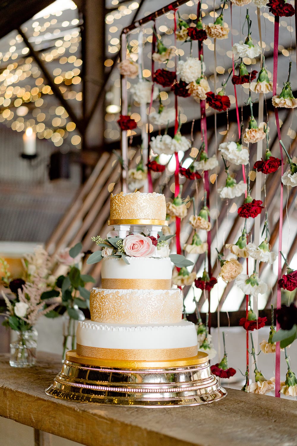 Sophia says Danny’s dear and talented nan made a three-tier fruit cake with the most detail-oriented gold designs. Our guests continue to rave about the food the Stone Barn team prepared, starting with the canapés, which included Devils on horseback, Welsh rarebit, and Cripps’ smoked monkfish. Our main meal was Roast Lamb and Seasonal Greens, and finally, our dessert was a delicious Ginger Pudding with caramel sauce.