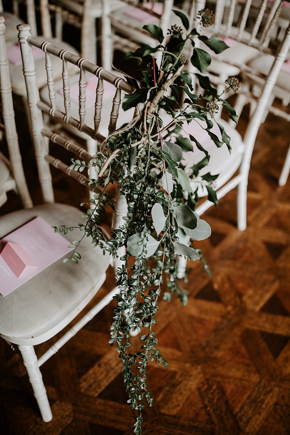 On the day a van turned up, filled to the ceiling with branches and greenery! It was incredible to see the final decorations in place, with the Great Hall fireplace, Main Entrance staircase and wedding breakfast tables in the Yellow room and Library decorated so stylishly by Starry Eyed Weddings. A mixture of simple greenery, including eucalyptus and ivy were the perfect backdrop for huge church candles, candles in hurricane lamps and of course… disco balls of varying size. As the night drew in, the candle light glittering against the silver disco balls was simply magical.