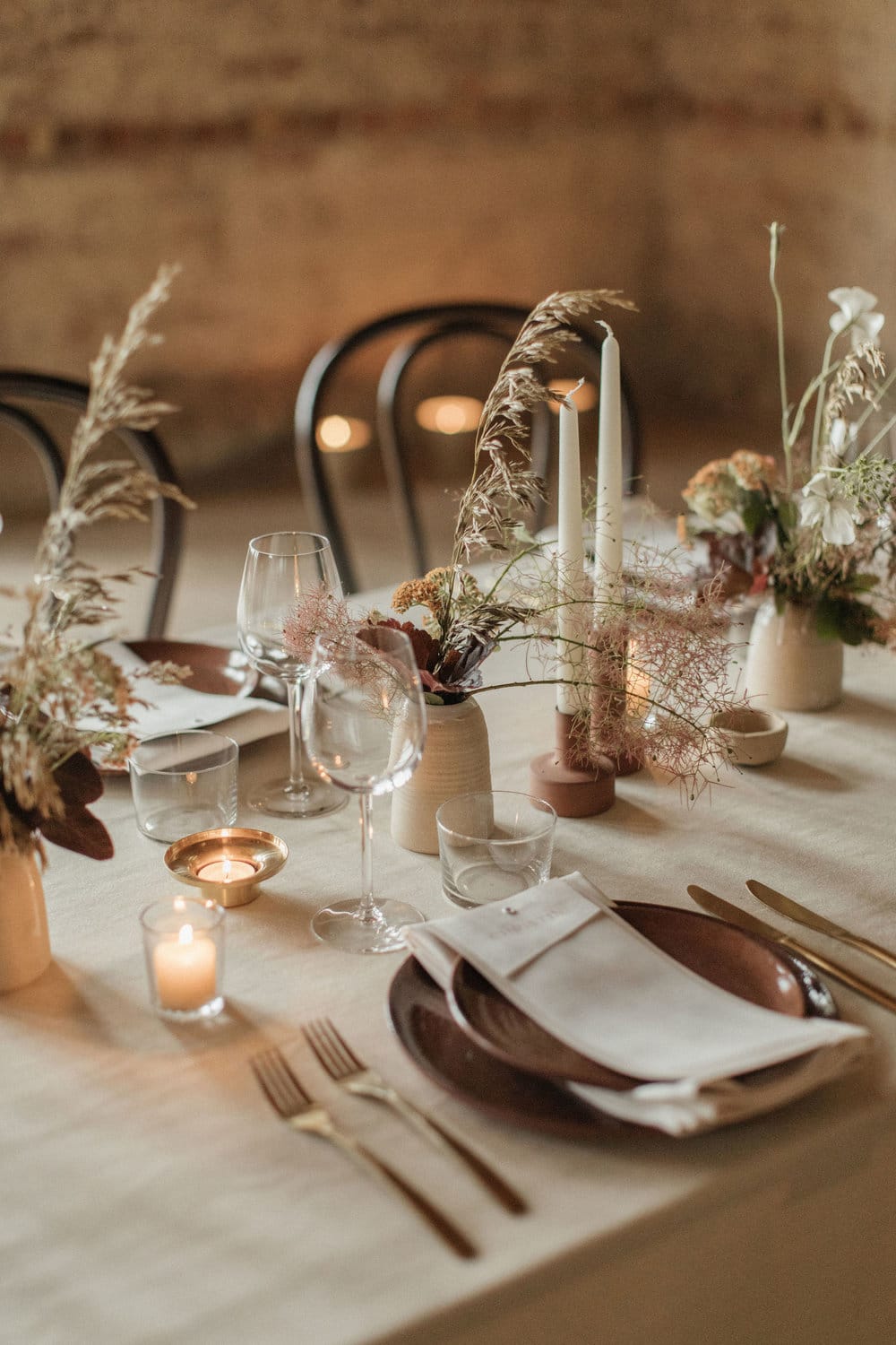 Ink’s a navy that’s so dark, it’s verging on black. The hint of blue in there makes it softer, but it’s still a shade that wants to be a bit braver with colour and tone. For weddings, you can go all out ink (tones of) bold (from your linen and chairs to stationery and details) to create depth as well as rich tonal layers, or alternatively ink can be used as an accent colour and is perfectly paired with paler neutral tones, mustard or punchier autumnal palettes.