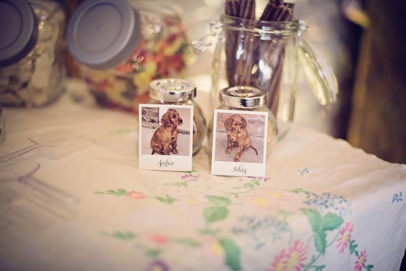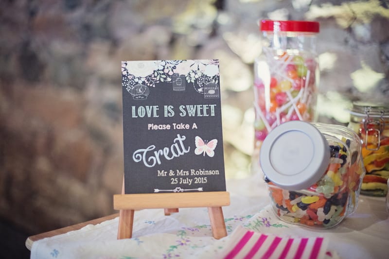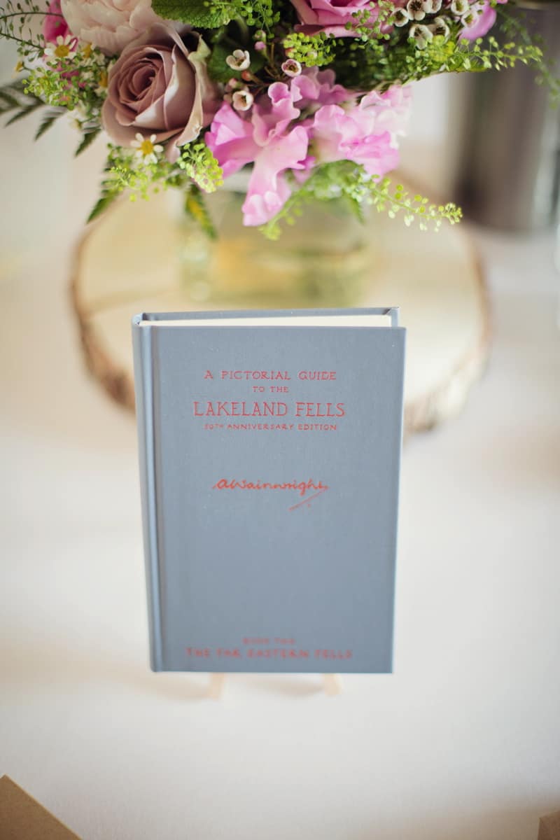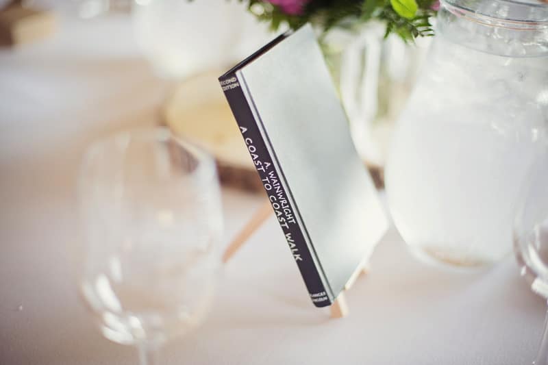 We did most of the styling ourselves, researching on various websites, and spending days – or what felt like it – on notonthehighstreet.com and wedding blogs trying to pick out what we wanted. We picked a map of the lake district for the table plan, and it seemed natural to have the tables named after each Wainwright book, and have the books on each table. Our parents assisted with wedding favours, and the wooden table centre pieces.