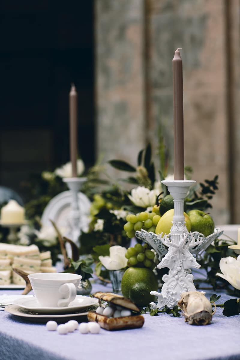 Stylist & Venue Dresser Sami from Verdigris Venue Dressing | Photography Albert Palmer Photography | Venue Arnos Vale Cemetery | Dresses Jessica Charleston | Flowers The Flower Hive | Cake Anna Tyler | Bone Tiara Bone Art by Alana | Tableware Portmerion | My Deer Candlesticks The French Bedroom Company | Stationery Hummingbird Cards | Laser Cut Bowls Andy Dingley | Makeup Louise Mackintosh (no website) | Model Katie May.