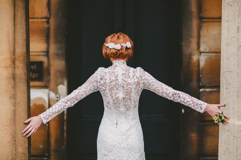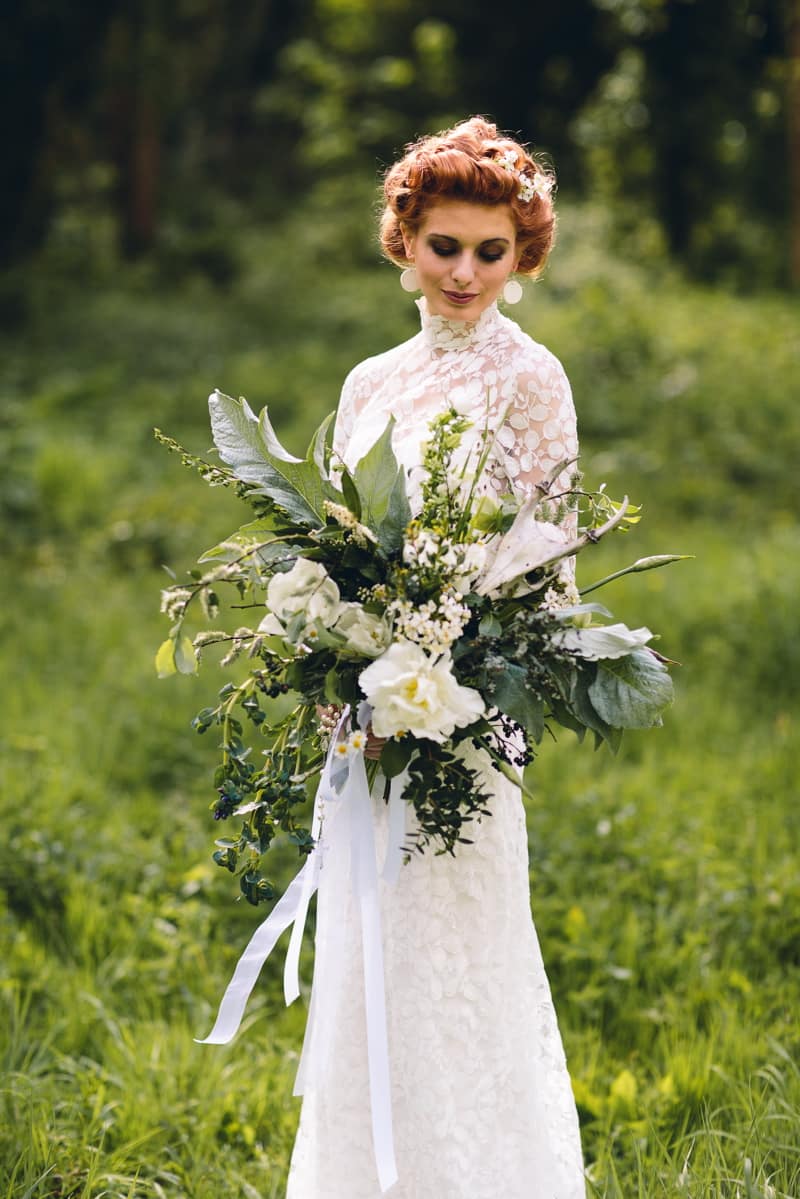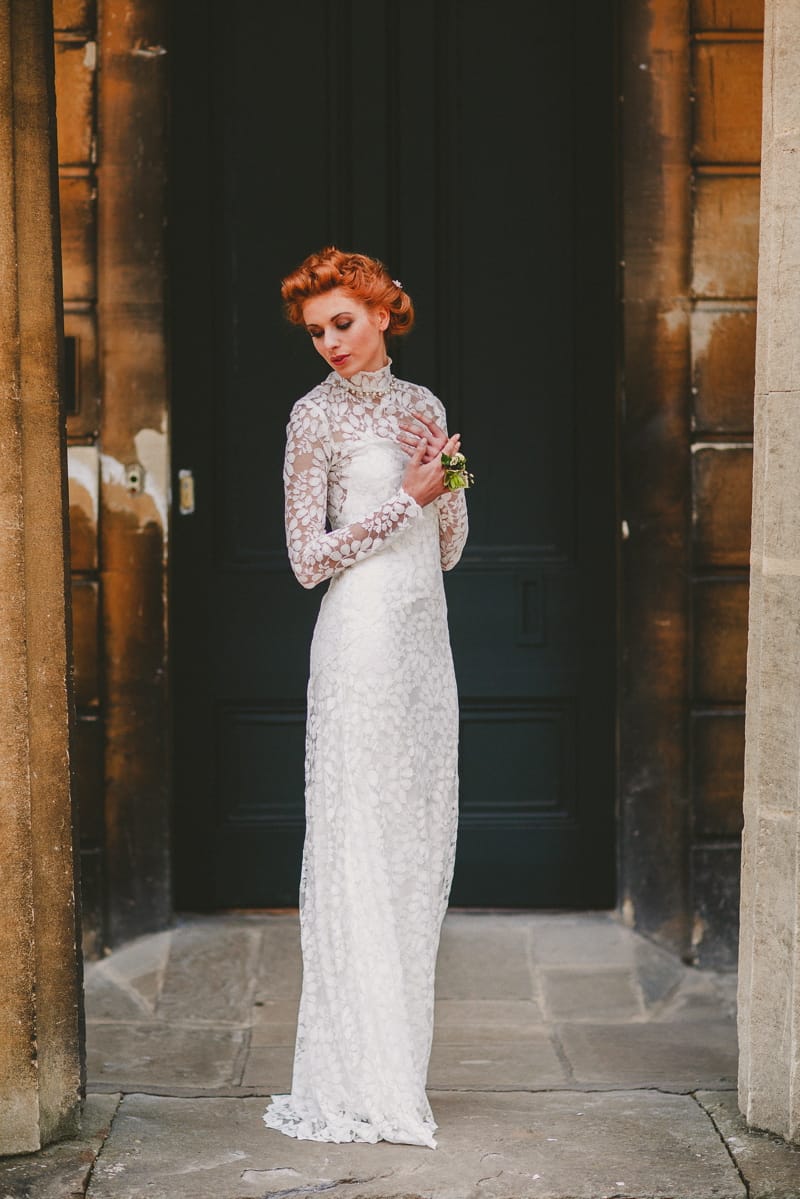 The shoot is soft gothic in feel with subtle arhitectural and antique touches that are a little reminiscent of Miss Havisham. The florals by The Flower Hive are rustic, seasonal and wild with foliage and blossom being the focus.