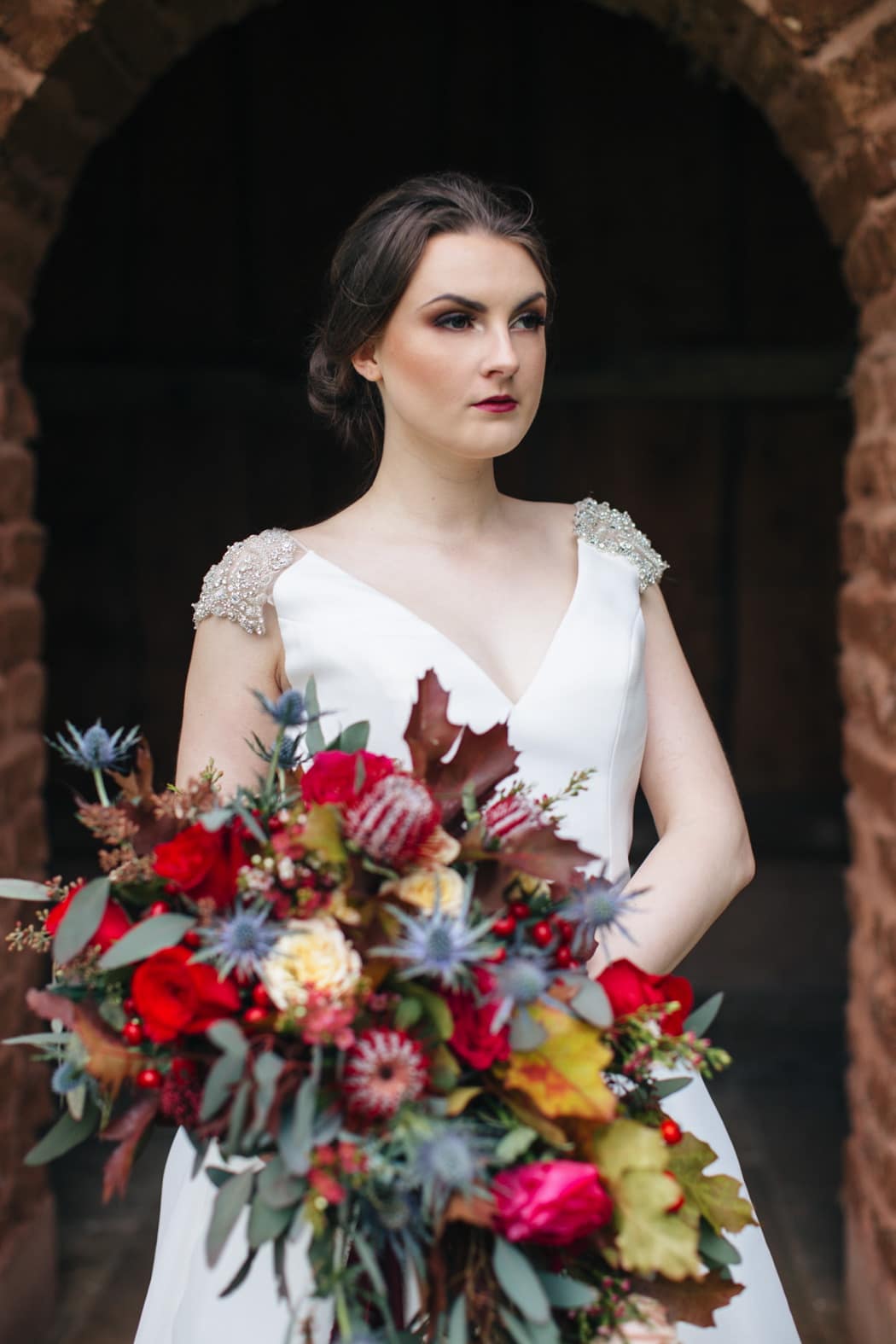 The dress worn by model Rebecca was Ovidia by Pronovias provided by The Wedding Company in Plympton. Her hair was styled beautifully in an elegant up-do by Brigitte Fisher and the makeup by Emma Roberts had subtle winter tones.