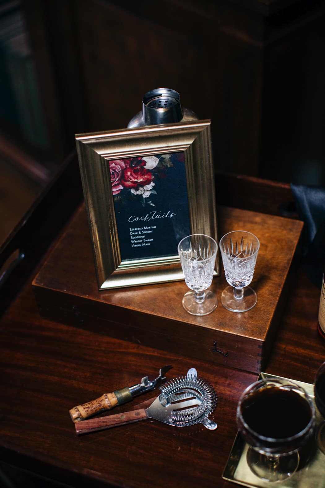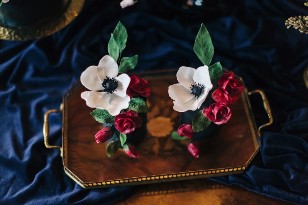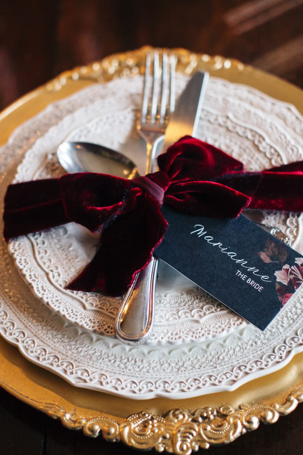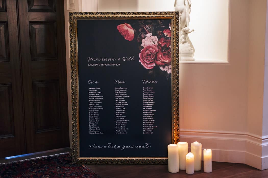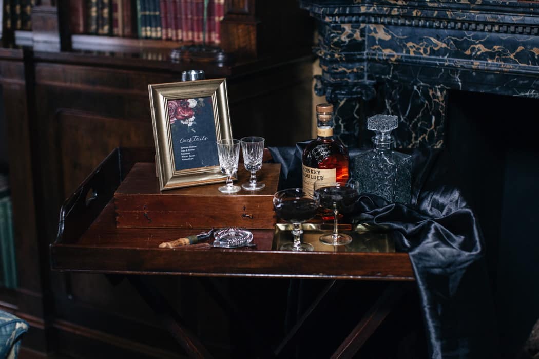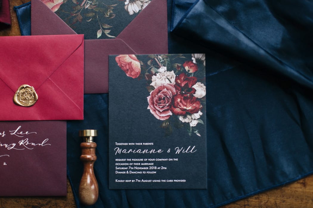 The overall theme was a dark, elegant and intimate winter wedding. The concept was put forward and the stylists main inspiration had been to take the winter style and décor of the house and translate that into a ‘Dutch Old Masters Painting’ feel. Burgundy, navy and metallics made up the gorgeous wintry palette.