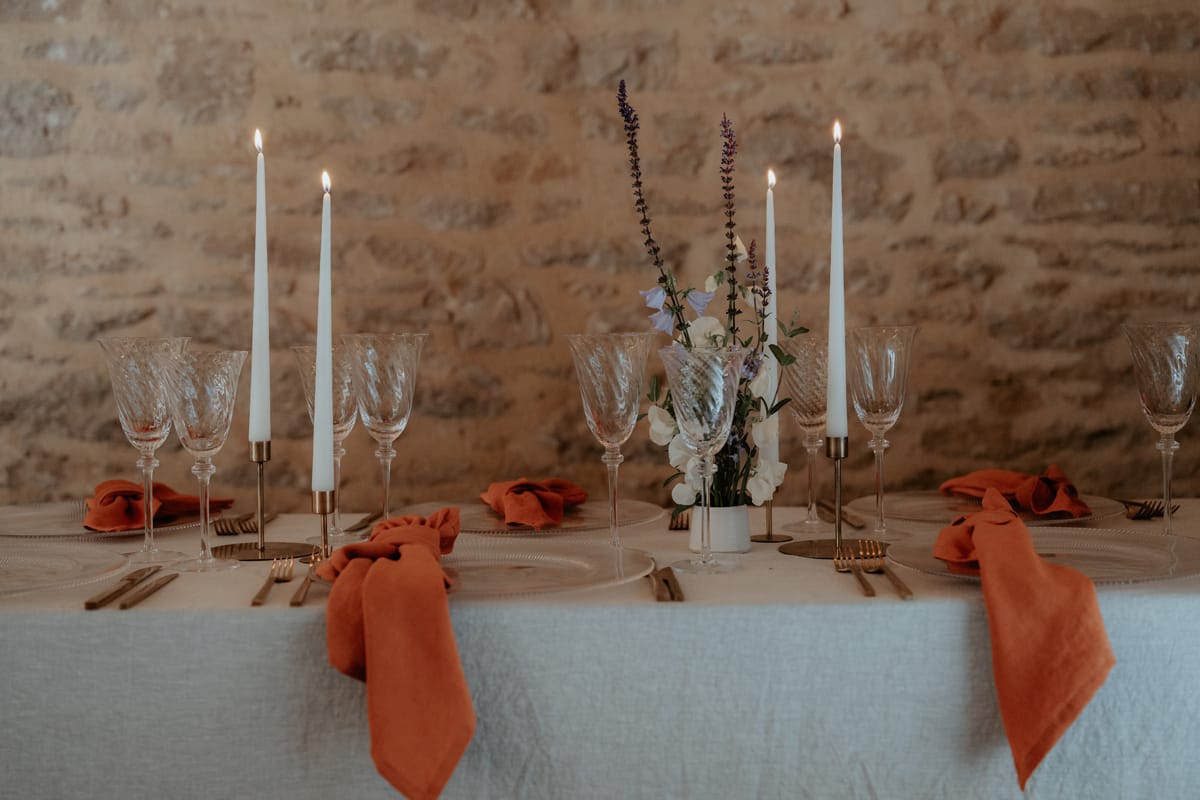 Haze Lea Floral Designs was the creative force behind the floral arrangements, choosing wildflower-inspired designs that perfectly complemented the venue’s natural surroundings. The florals were bold and drew inspiration from the farmhouse’s interiors, adding an element of surprise and playfulness. Inside, ALBA Tableware curated a rustic-chic table setting, beautifully complemented by eye-catching stationery from Littlebird Weddings. Every detail was thoughtfully designed to highlight the venue.