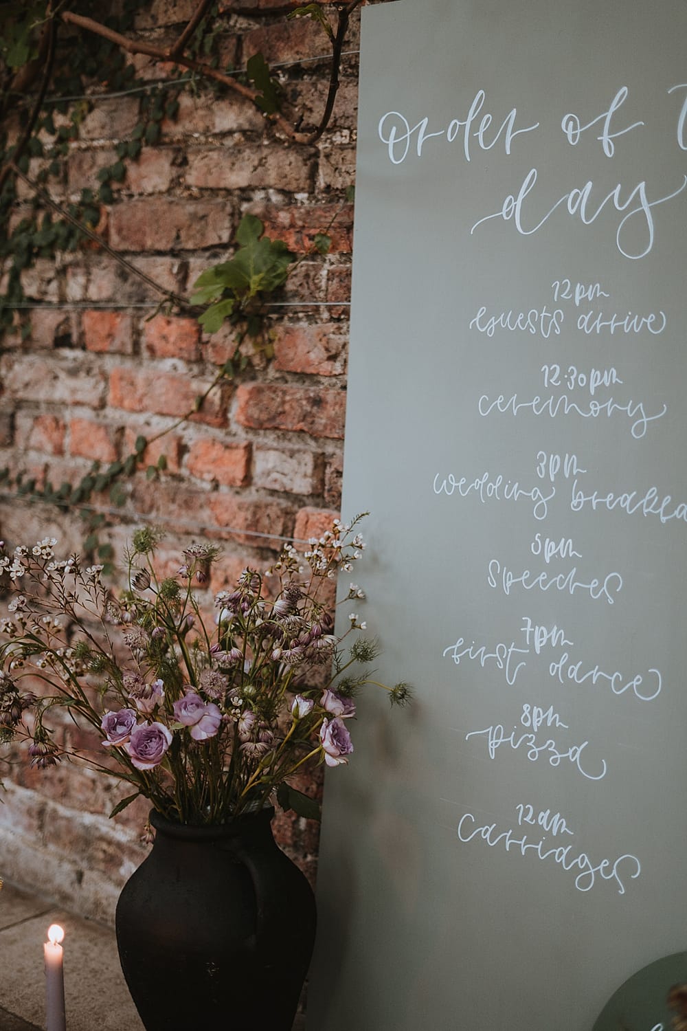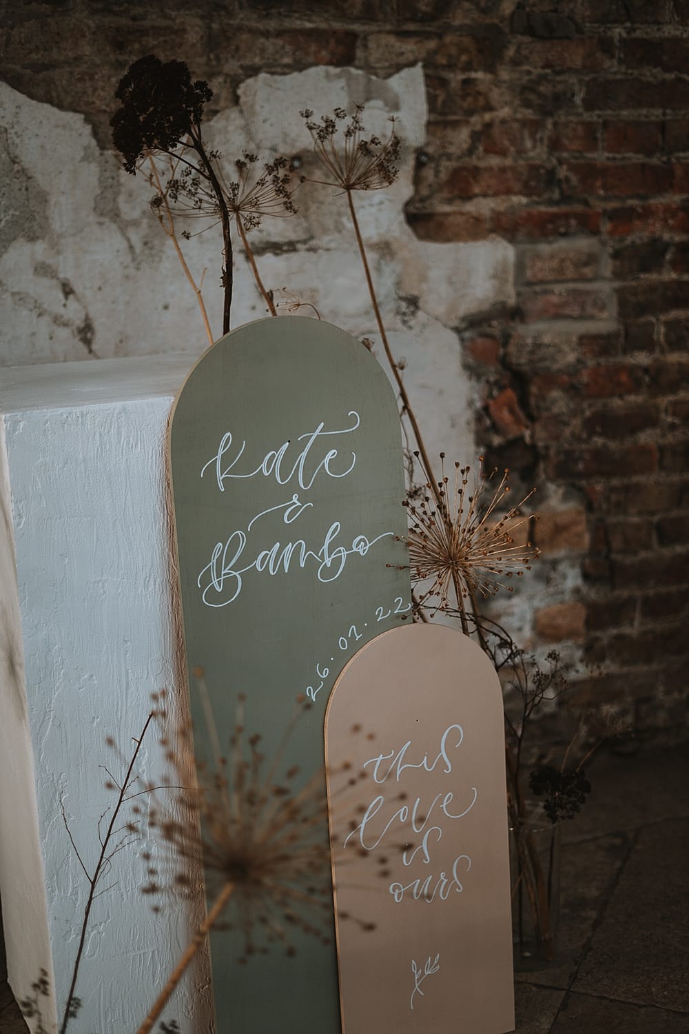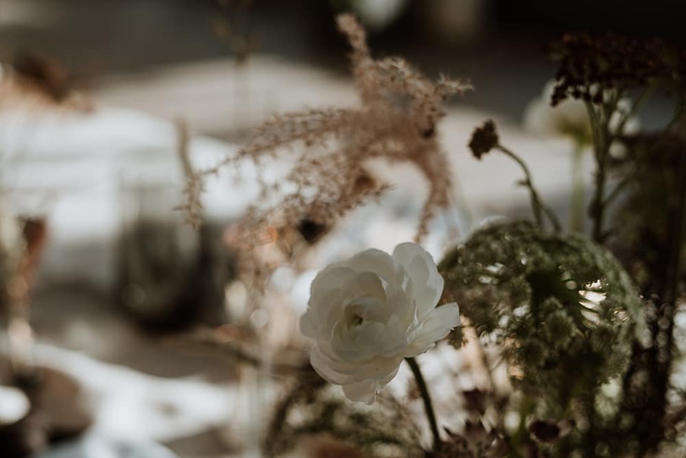 We worked with the recently published Frances & Rose who specialises in growing her own flowers and working as eco-consciously as possible. Seasonal fresh flowers were used along with stems of dried florals are spread intermittently across the table to add colour, depth and texture and provide cohesion across the venue.