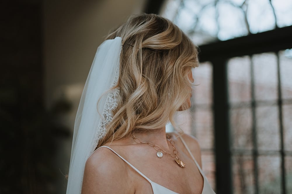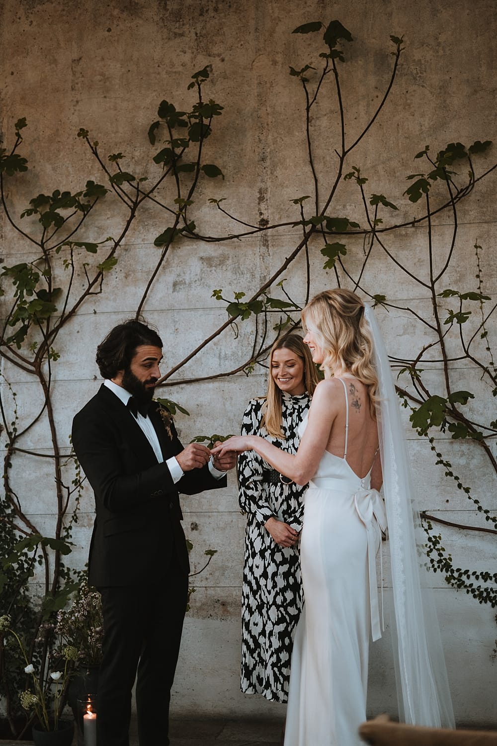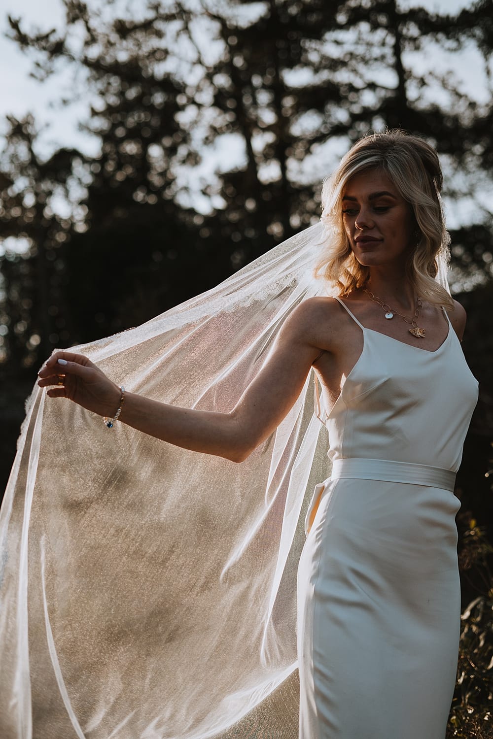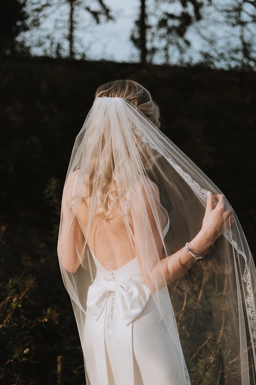 Kate wore the 100% sandwash silk bias cut Bay slip dress with the added oversized duchess bow belt for an elegant and stylish ceremony look. This was paired with the cathedral length lace trimmed veil. For the ceremony we decided to show a celebrant-led ceremony as it gives you the freedom and flexibility to have something completely bespoke and personal to you.