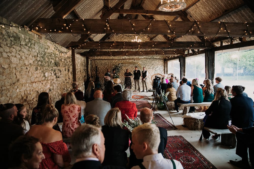 Our wedding cake, made by my sister’s friend, featured layers of lemon sponge with buttercream. Catering by Clippers Catering included a two-course menu with pie and mash as our main (much needed on a blustery, rainy day), followed by a trio of passion fruit posset, pavlova and mini banoffee. The plates were empty!! We later had these guys rustle up loaded nachos for the evening guests. Hearty, rustic, and one of our hosting favourites. We had staffing behind the bar and also got friends of a friend to run a cocktail bar. We added that little bit of glamour, rocking the cocktails out of an upcycled 70’s quilted bar my father renovated for us.