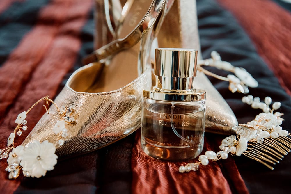 My sister surprised me with white satin heels, and I later wore pre-loved gold heels in the evening. We did our hair and makeup, and Ben’s ensemble was a mix of high-street finds. My bridesmaids wore emerald green dresses and gold heels, all bought at bargain prices!