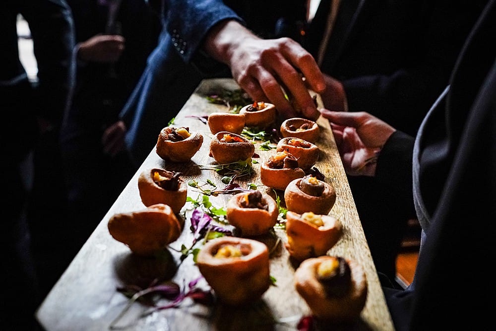 Make sure you have plenty to drink and enough canapés for the reception so guests are happy and relaxed, with plenty to sip and snack on. Your caterers will need to know your thoughts on quantities for canapés and how much you anticipate your hungry guests will need. You’ll want enough to tide your guests over till the wedding breakfast, without filling them up before the main event. A good way to create a steady flow of nibbles is to ask your caterers to stagger the platters of canapés throughout the reception.
