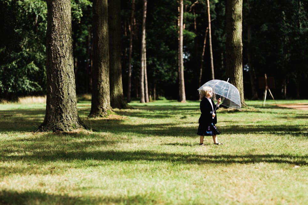 Consider covering wooden benches with rugs or throws to protect your guests’ outfits from sap – this will also add to your ceremony décor and give your woodland venue a pop of colour. If the weather is looking a little unpredictable, a basket overflowing with blankets and brollies will go down well with your guests. The team at Somerley Woodland Weddings will have your back when it comes to thinking of all those outdoor details and logistics.